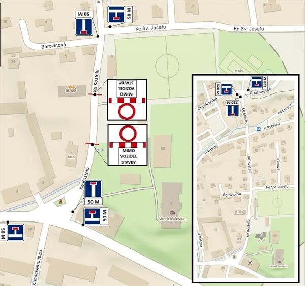Od pondělí 2. března čeká řidiče v Malesicích nepříjemné omezení. Kvůli pokračujícím pracím na vodovodu a kanalizaci se zcela uzavře ulice Ke Kostelu v úseku před mateřskou školou.