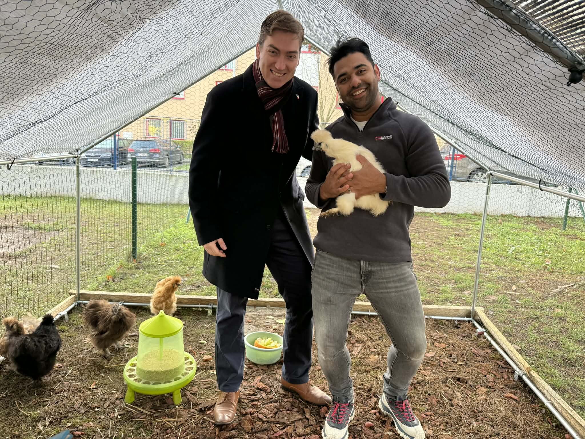Podle ředitele mateřinky Oskara Arceho, chápou děti vše lépe, když to vidí na vlastní oči a jsou toho součástí. „Pro mnohé z nich je to první setkání s domácí drůbeží vůbec. Našich pět tříd se bude postupně v péči o slepičky po týdnech střídat. To znamená, že jim vybírají vajíčka, čistí kurník i výběh, krmí je, ale také se s nimi mazlí. Každá třída si také jednu slepičku pojmenuje, už nyní máme kohouta Kurta a slepičku Vločku, ostatní zatím na svá jména čekají. Se starostí o drůbež dětem také pomáhá naše zahradnice Janička,“ uvedl ředitel 70. MŠ Oskar Arce.