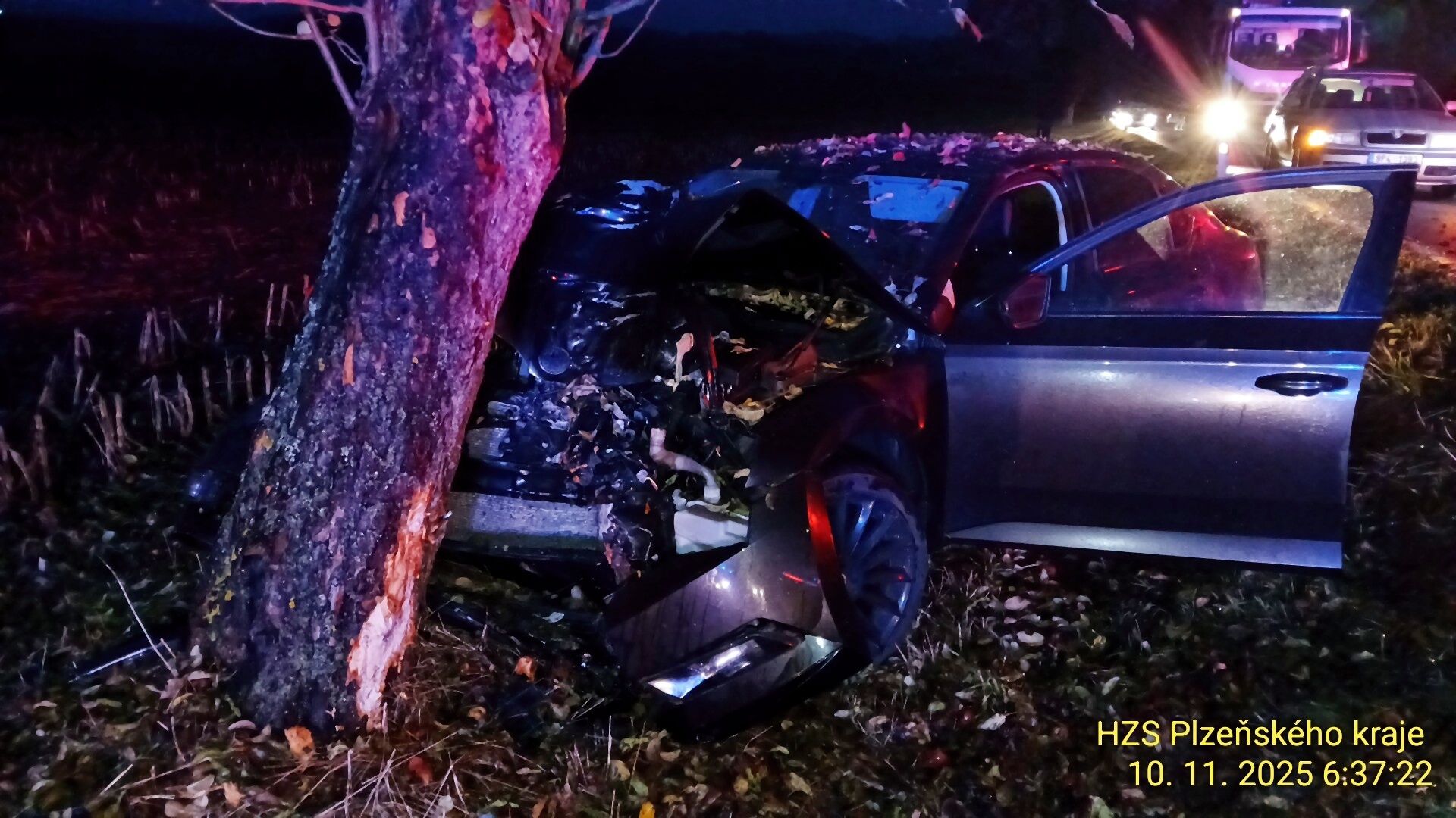 „Mezi Ostřeticemi a Klatovy narazilo osobní auto do stromu. Jedna osoba skončila v péči záchranné služby. Na místě jsme provedli zajištění nehody, vyprošťování nebylo nutné,“ uvedl Petr Poncar, mluvčí Hasičského záchranného sboru Plzeňského kraje.