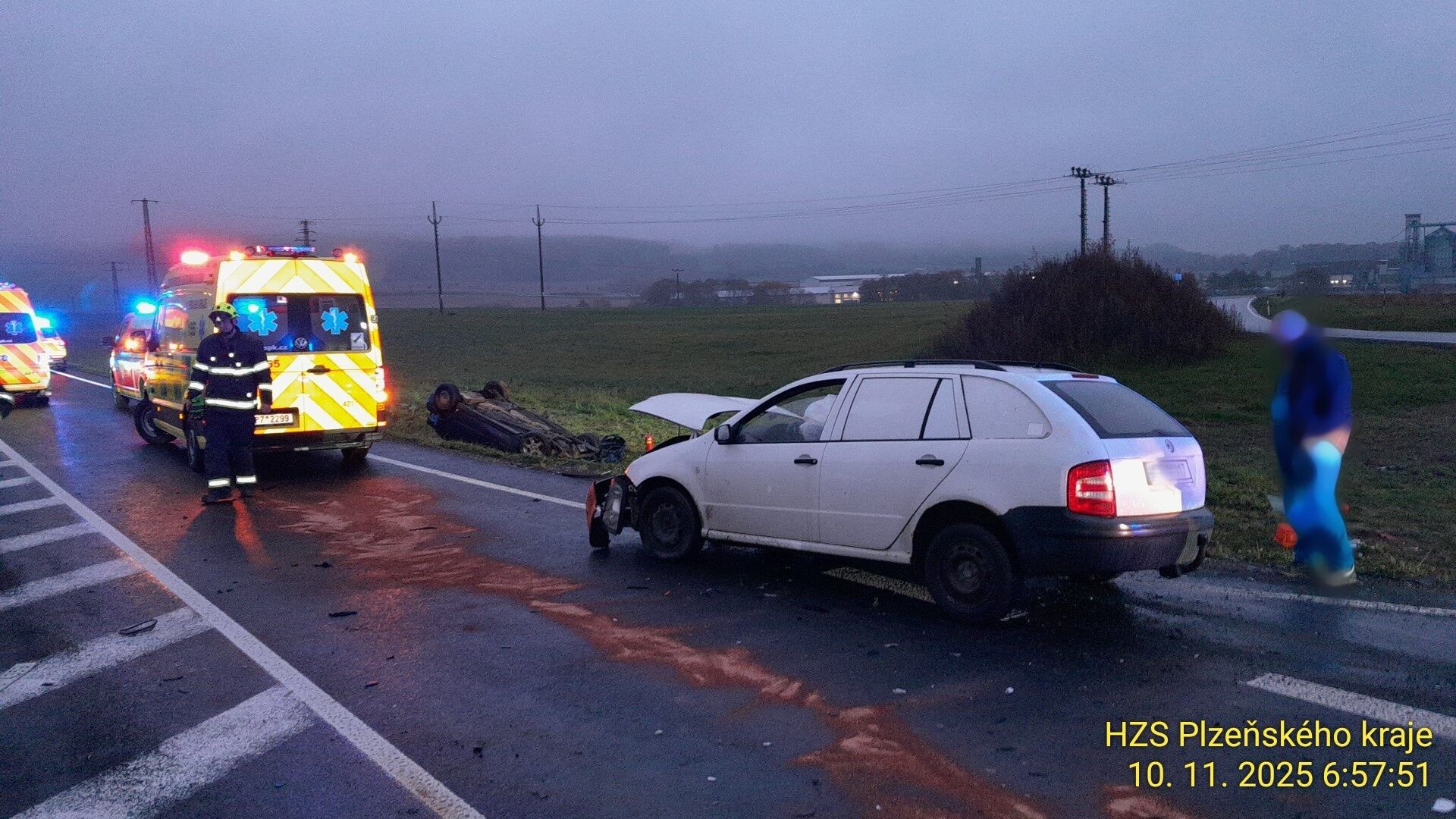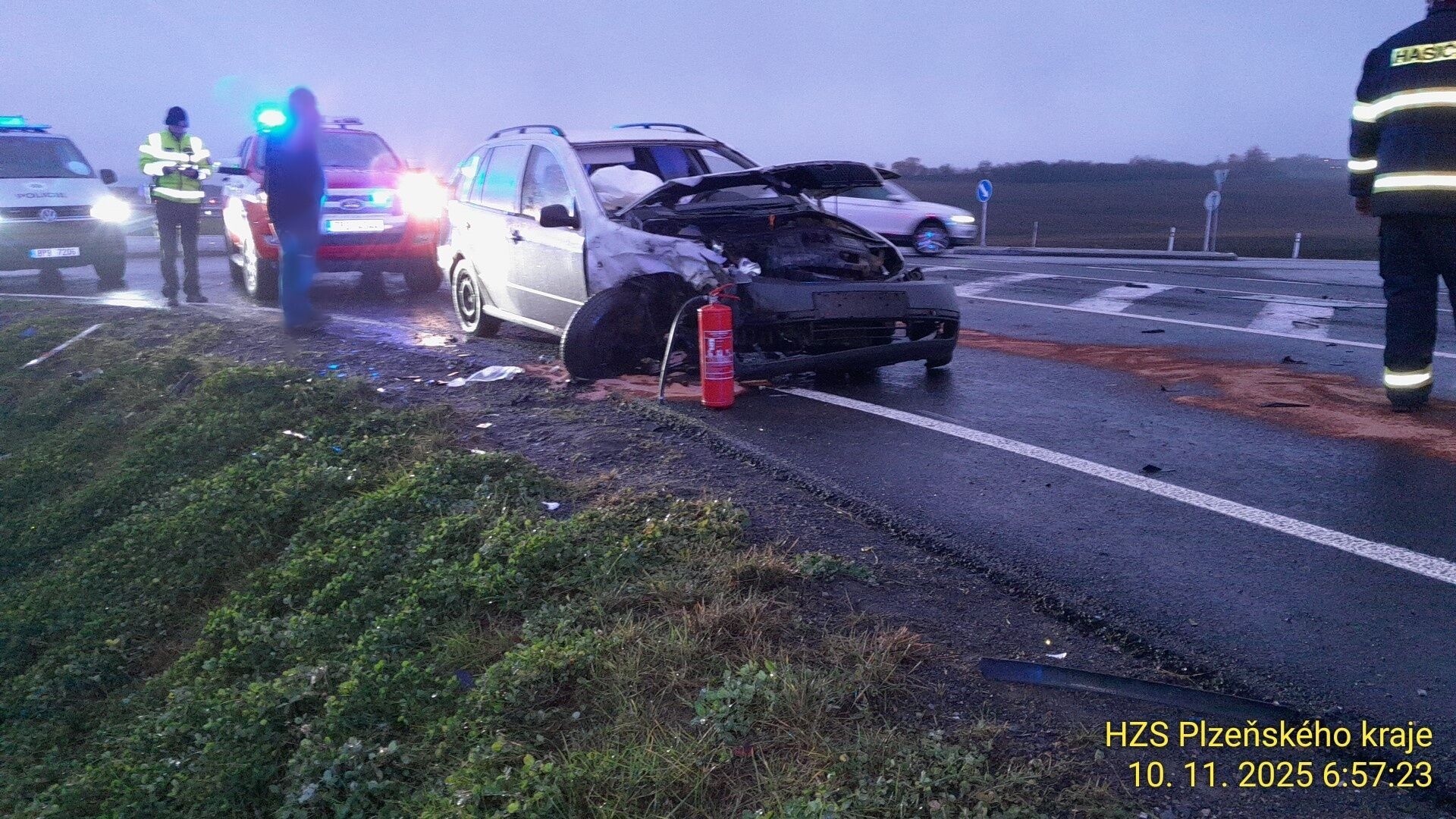 Ranní pondělní dopravu v Plzeňském kraji komplikovaly dvě vážnější dopravní nehody, ke kterým musely vyjíždět všechny záchranné složky.