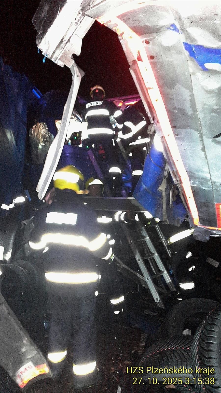 Na D5 se v noci srazily dva kamiony, zasahovaly všechny složky IZS - FOTKY