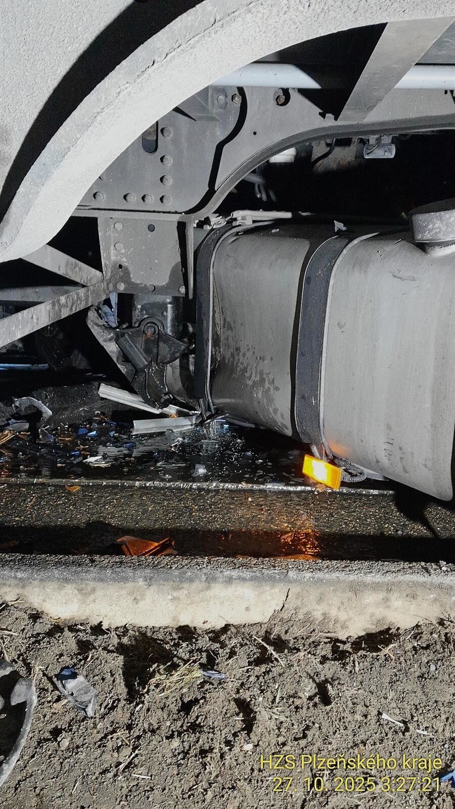 V pondělí 27. října v nočních hodinách došlo na 124. kilometru dálnice D5 ve směru na Rozvadov ke střetu dvou nákladních vozidel.