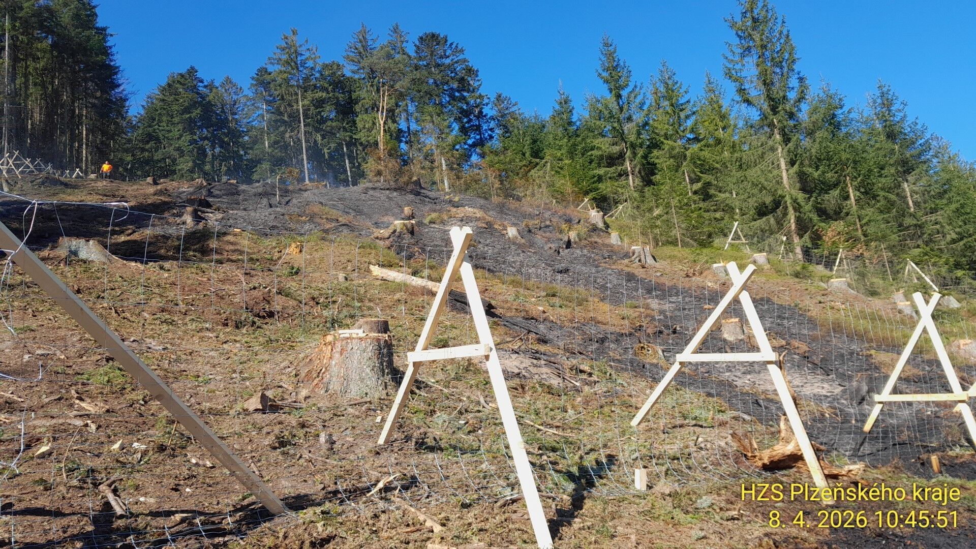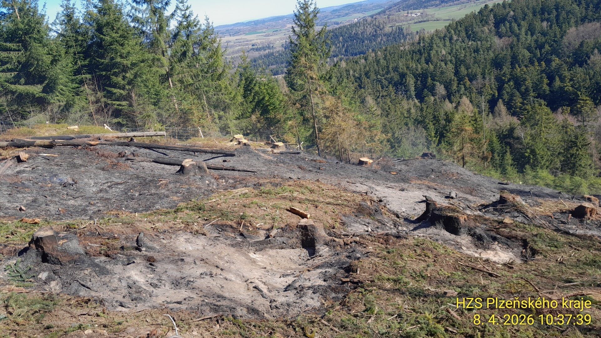 Hasiči byli na místo vysláni krátce po desáté hodině dopolední. „V lese jihovýchodně od Hlavňovic hasíme požár hrabanky po pálení klestu. Na místě je více ohnisek a aktuálně zasahujeme dvěma proudy,“ informoval přímo z místa mluvčí krajských hasičů Petr Poncar.
