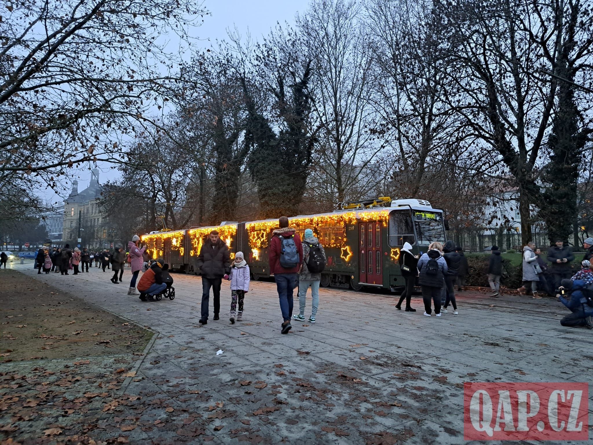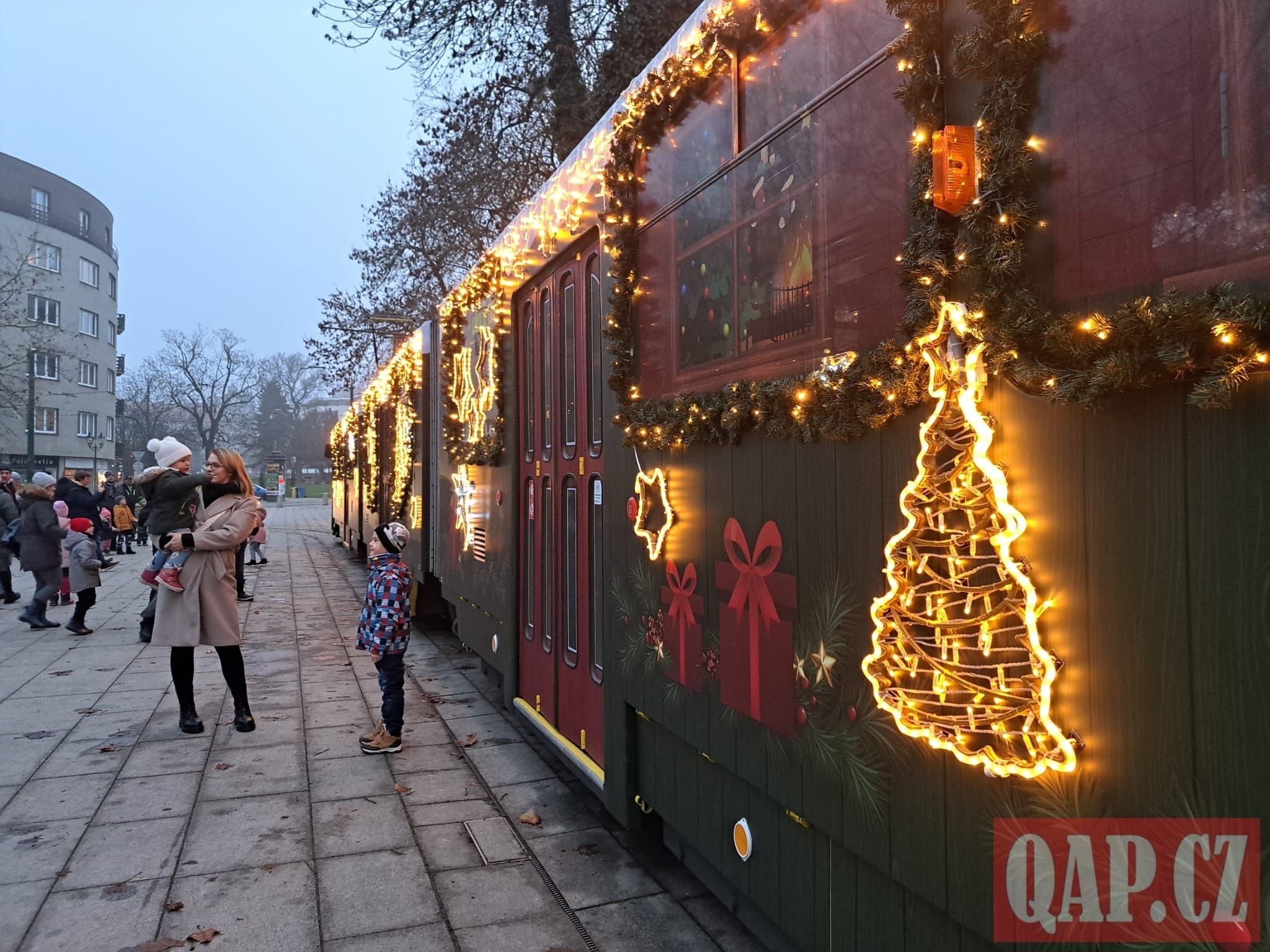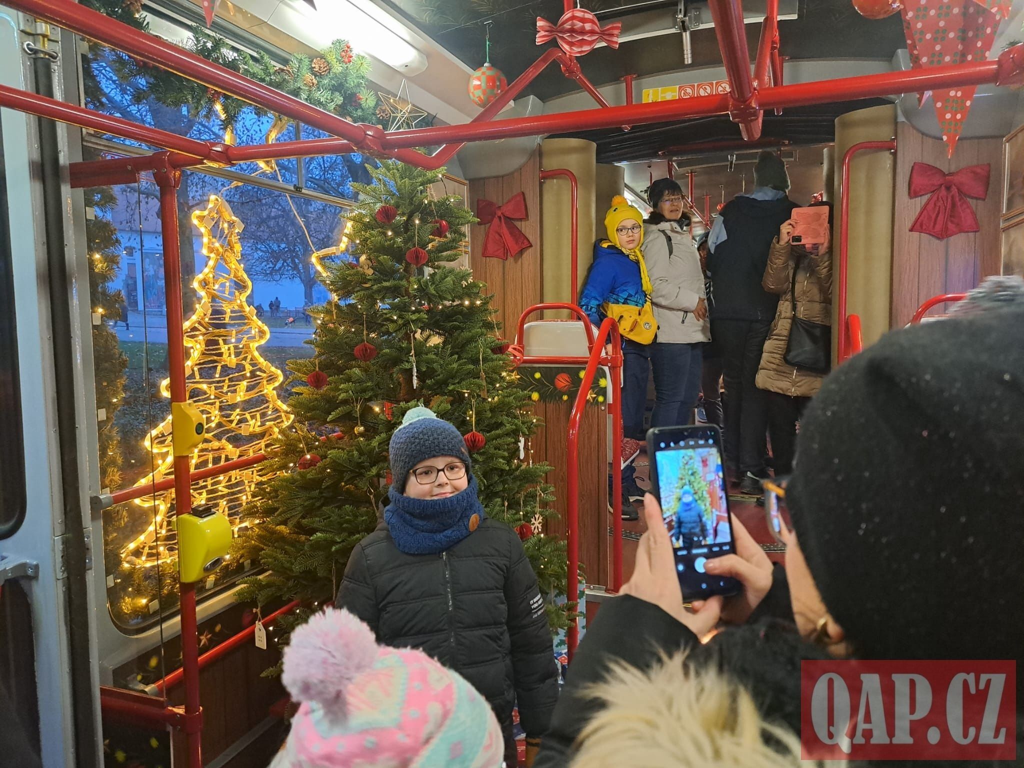 Plzeňané v neděli odpoledne poprvé viděli letošní podobu vánoční tramvaje. Přesně v 16 hodin byla tramvaj přistavena do obratiště U Zvonu, kde na ni už čekalo mnoho lidí. Děti nadšeně pokřikovaly, jakmile se vyzdobená souprava blížila, a hned po zastavení se k ní začaly sbíhat rodiny i fotografové.