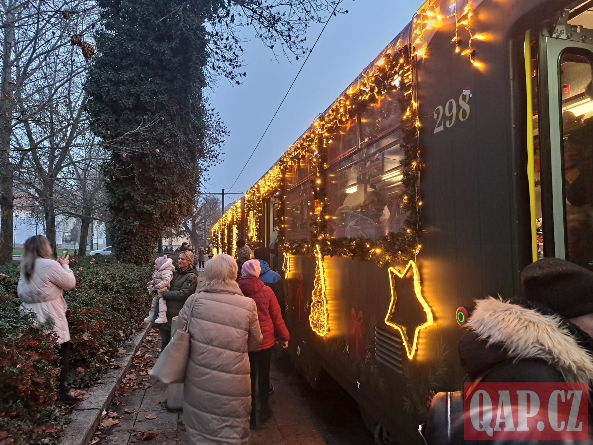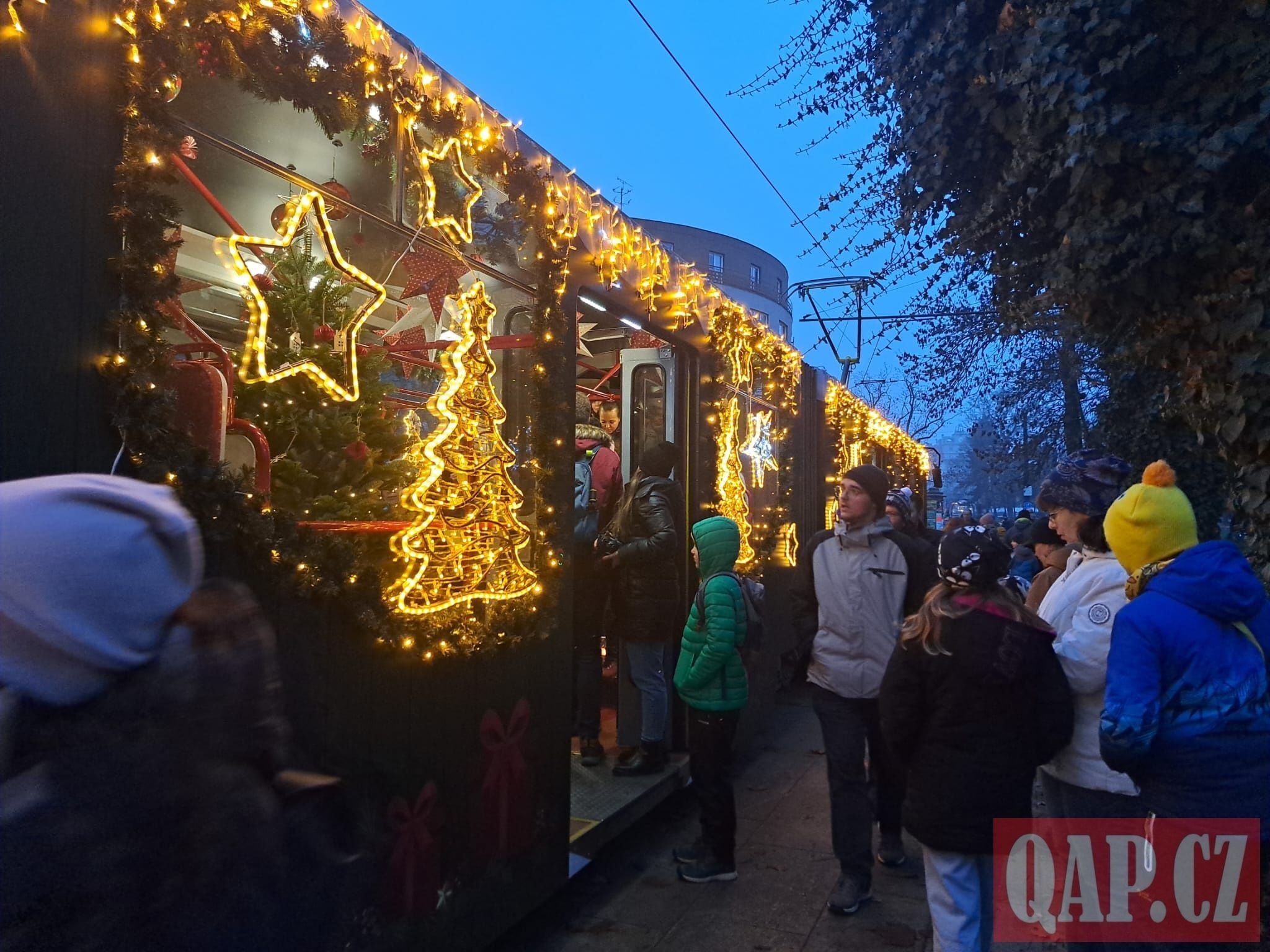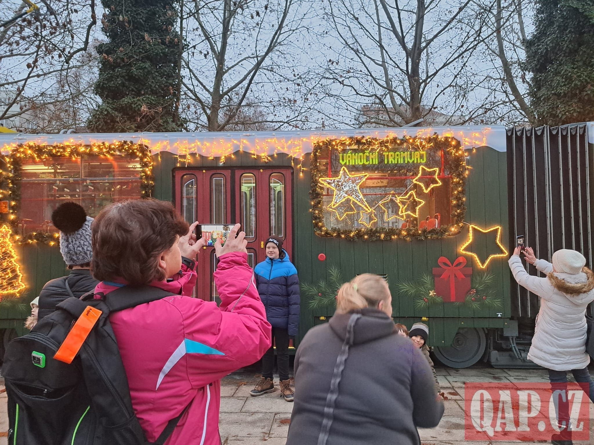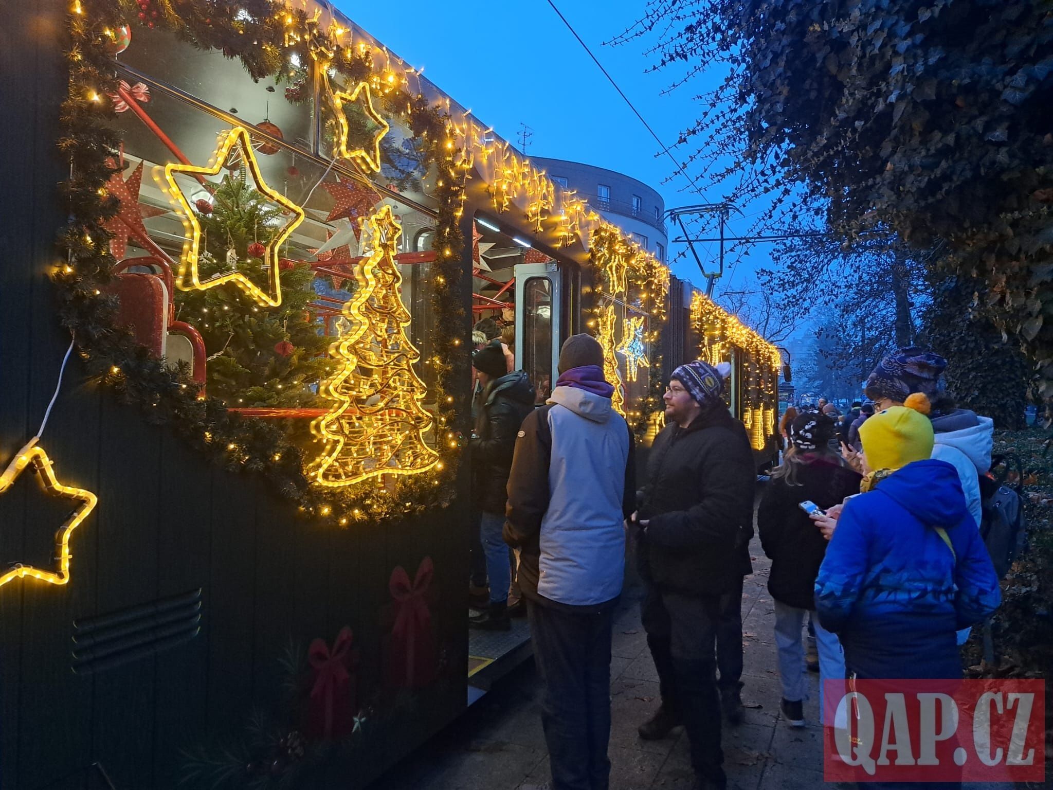 Plzeňané v neděli odpoledne poprvé viděli letošní podobu vánoční tramvaje. Přesně v 16 hodin byla tramvaj přistavena do obratiště U Zvonu, kde na ni už čekalo mnoho lidí. Děti nadšeně pokřikovaly, jakmile se vyzdobená souprava blížila, a hned po zastavení se k ní začaly sbíhat rodiny i fotografové.
