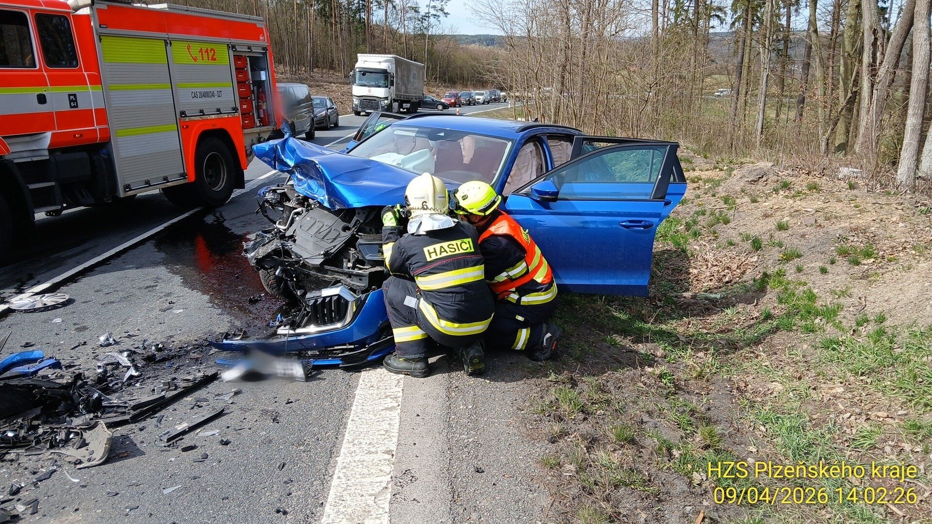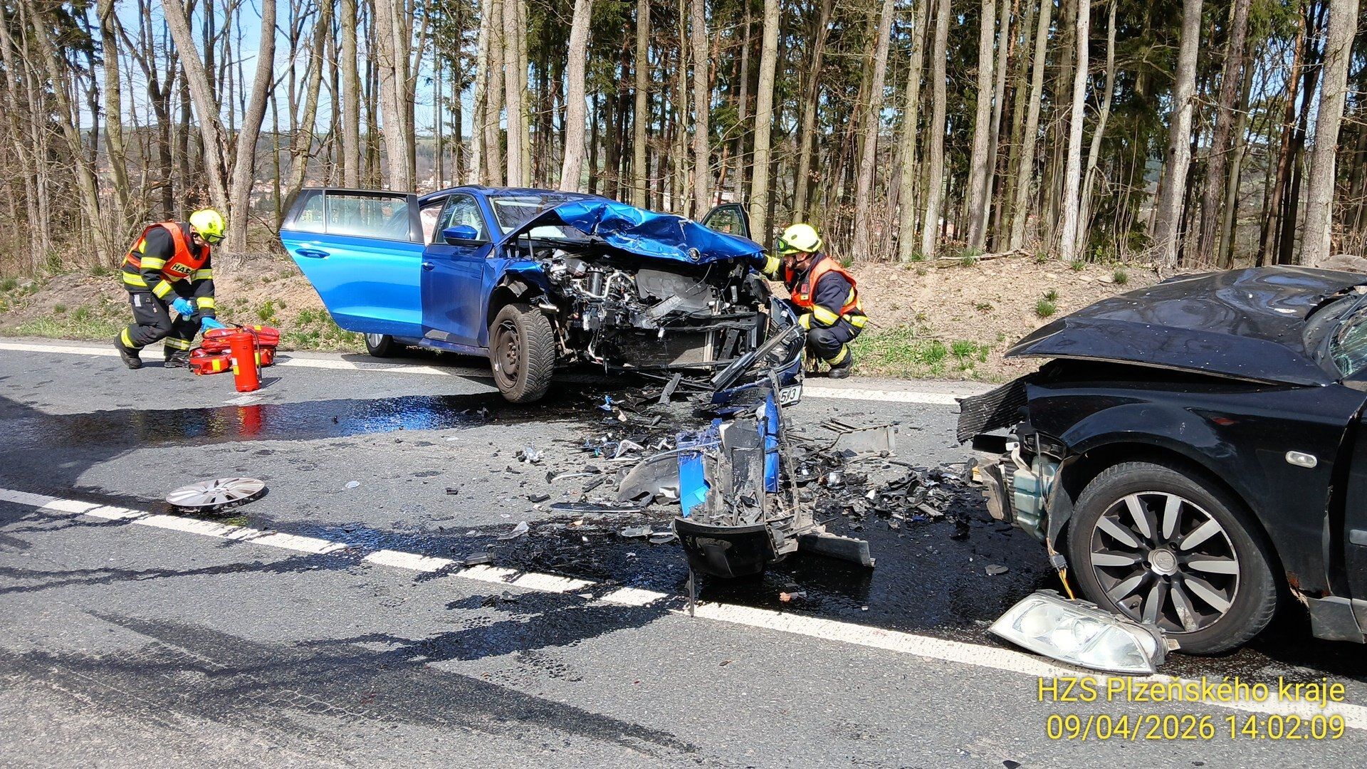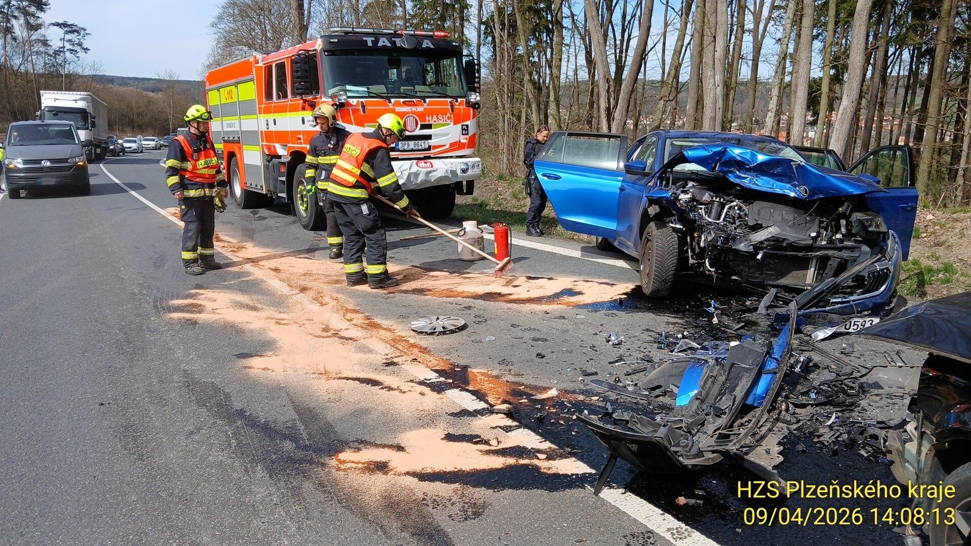 K nehodě došlo ve čtvrtek 9. dubna před 14. hodinou na hlavní silnici z Rybnice na Plasy na severním Plzeňsku. „Zajistili jsme místo nehody a poskytovali předlékařskou pomoc. Dále jsme zlikvidovali uniklé provozní kapaliny,“ uvedl Petr Poncar, mluvčí hasičů a doplnil, že se nehoda obešla bez vyproštění.