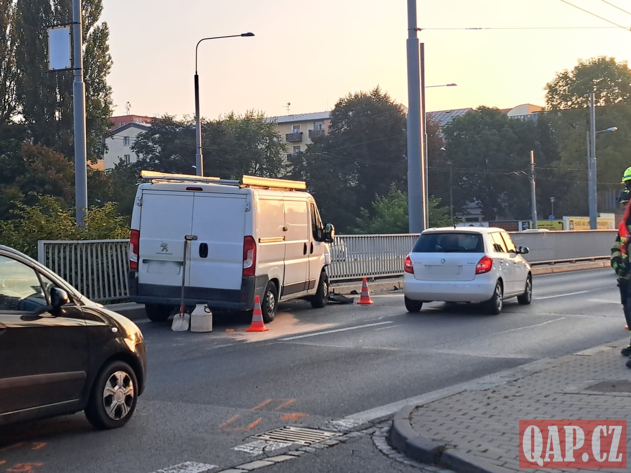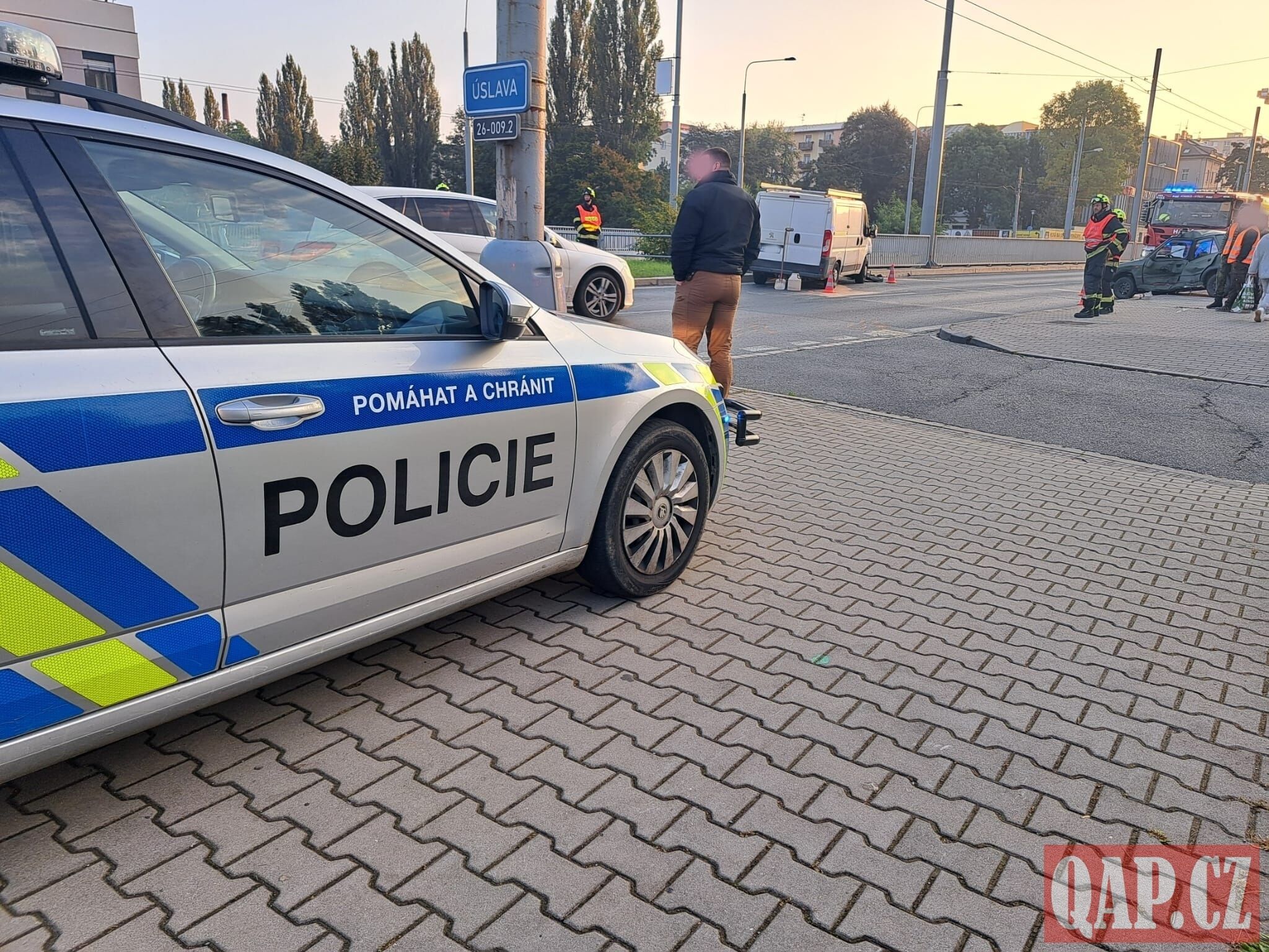 „Podle dosud zjištěných skutečností jela řidička (ročník 1998) vozidla značky Škoda Felicia po účelové komunikaci od Rolnického náměstí a při vjíždění na Rokycanskou třídu nedala přednost řidiči (ročník 1980) nákladního vozidla značky Peugeot, který jel od ulice Jateční k ulici Revoluční zařazen v pravém jízdním pruhu. Došlo ke střetu a obě vozidla byla odražena mimo komunikaci," popsala mluvčí policie Michaela Raindlová.
