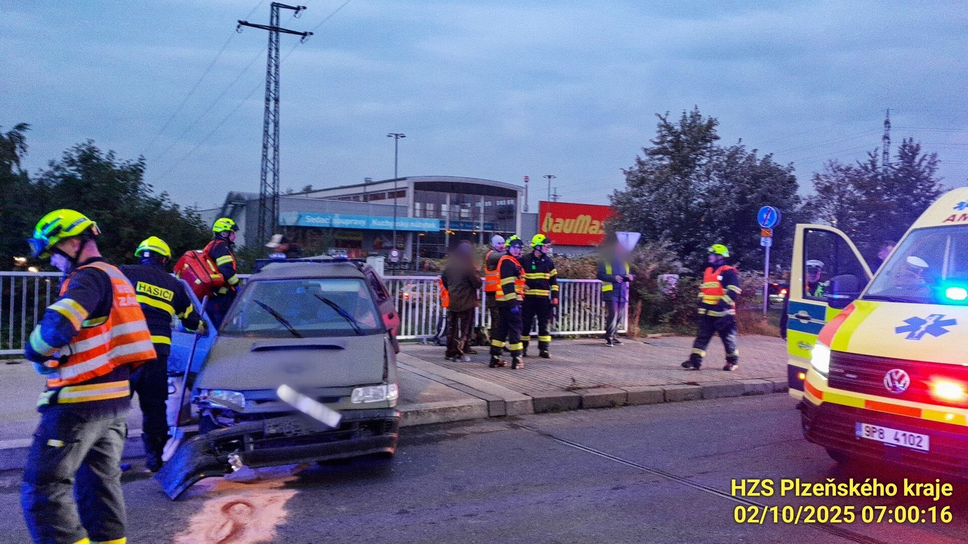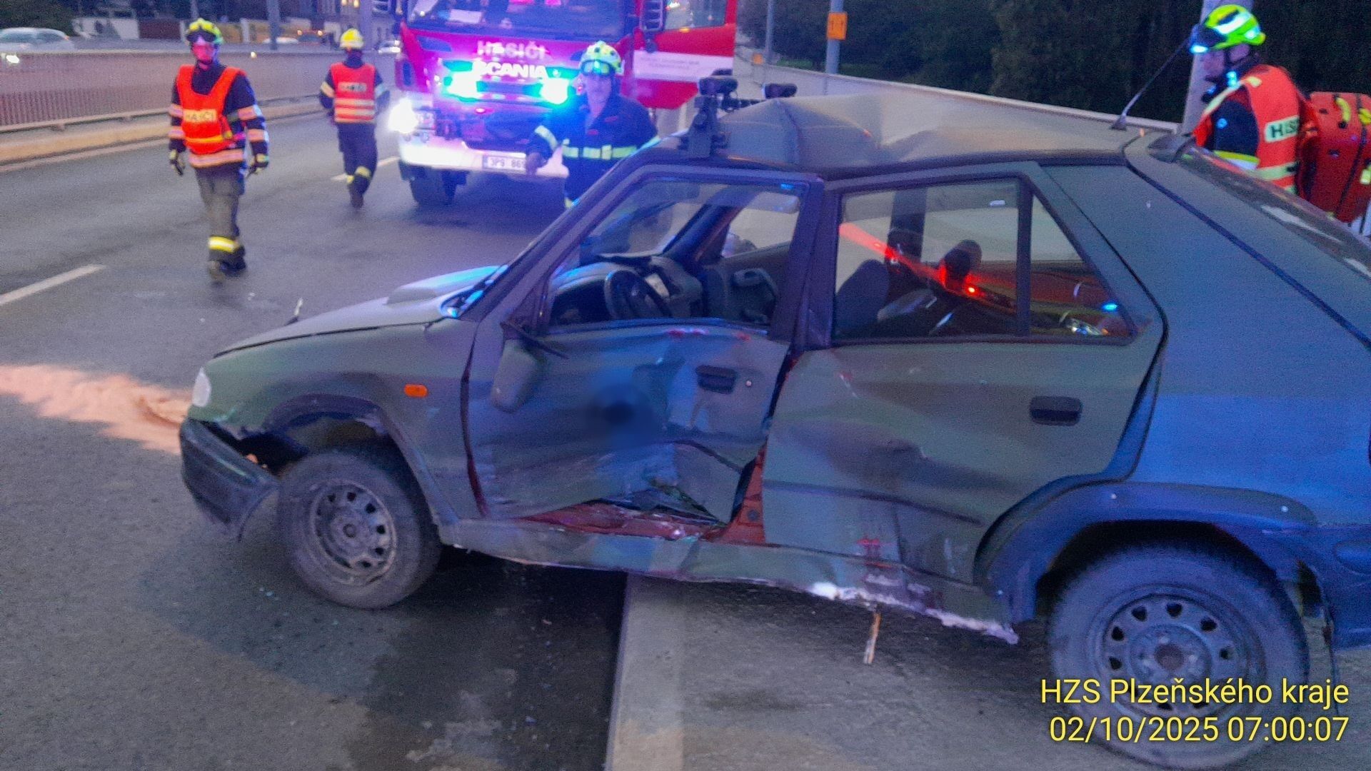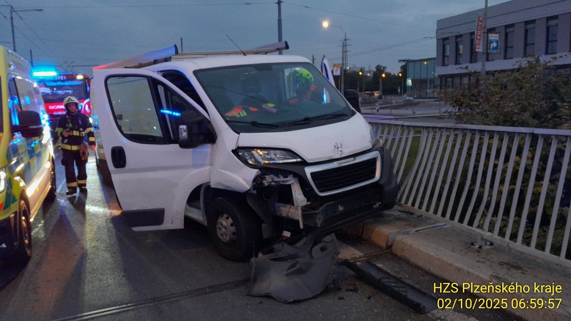 Ve čtvrtek 2. října od cca po půl sedmé ráno zasahují všechny složky integrovaného záchranného systému na Rokycanské třídě v Plzni nedaleko obchodního domu Baumax. Došlo zde ke střetu dodávky a osobního auta.