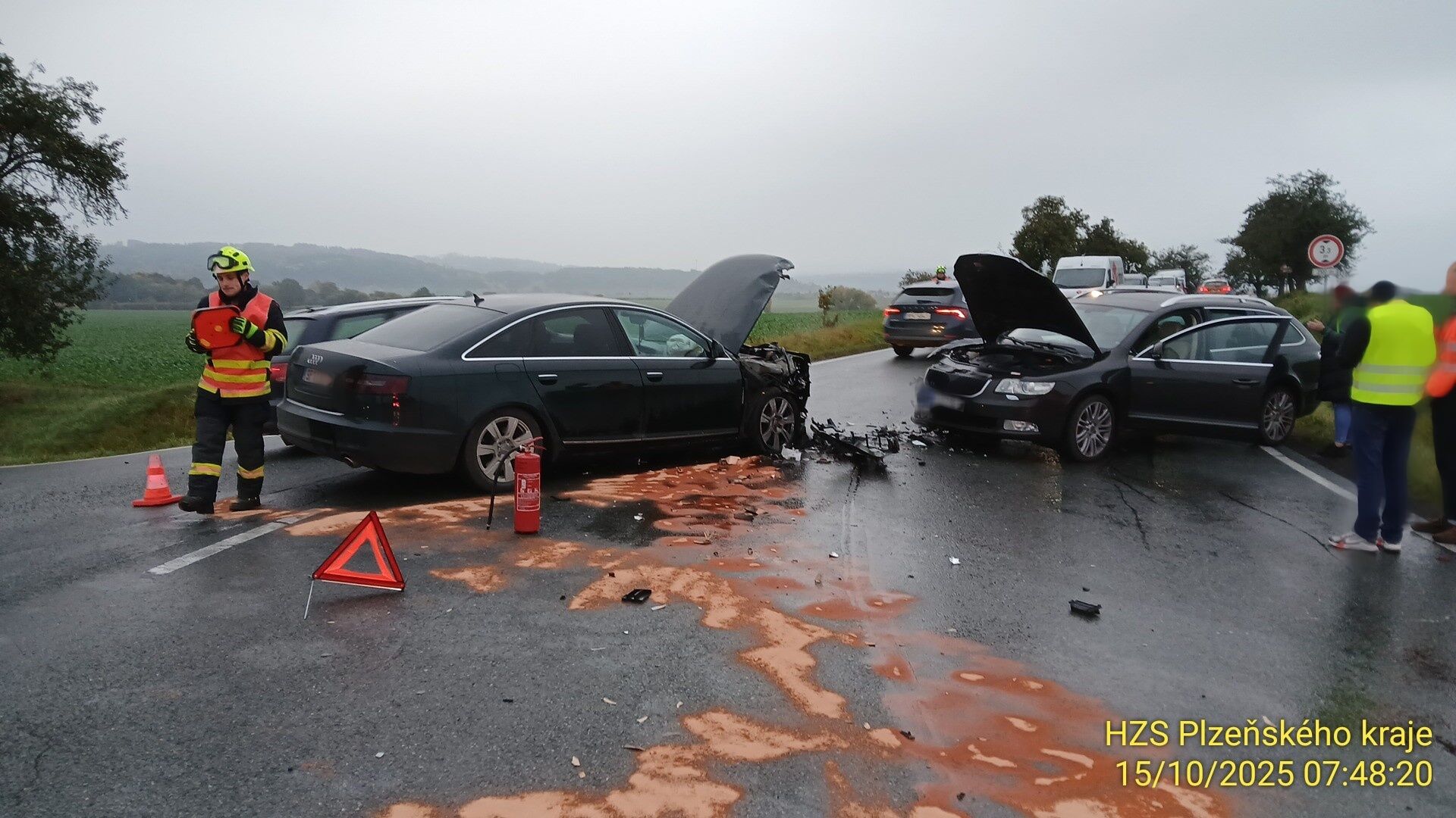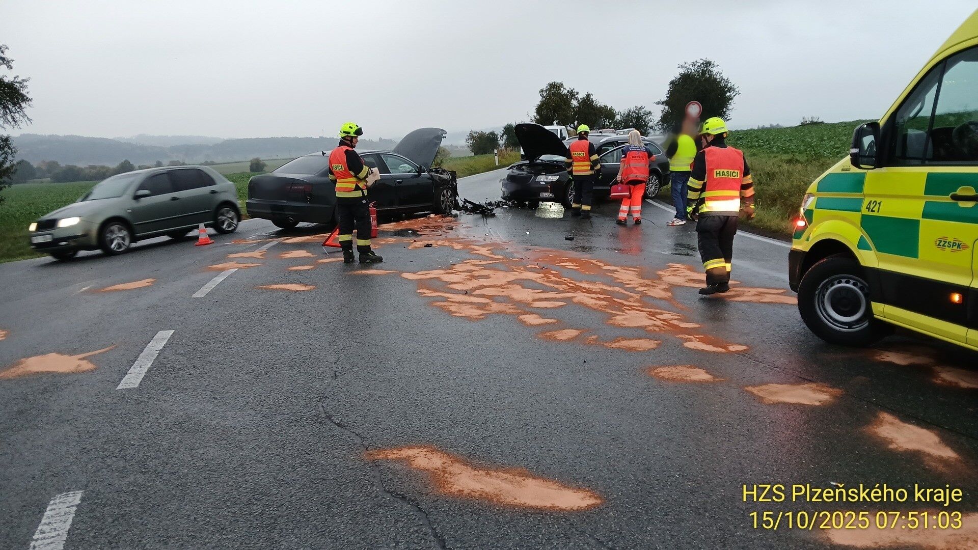 „Na křižovatce silnic I/19 a III/1772 u Šťáhlav se střetla tři osobní auta. Nehoda komplikuje dopravu. Zajistili jsme místo události a zlikvidovali uniklé provozní kapaliny,“ uvedl mluvčí hasičů Petr Poncar.