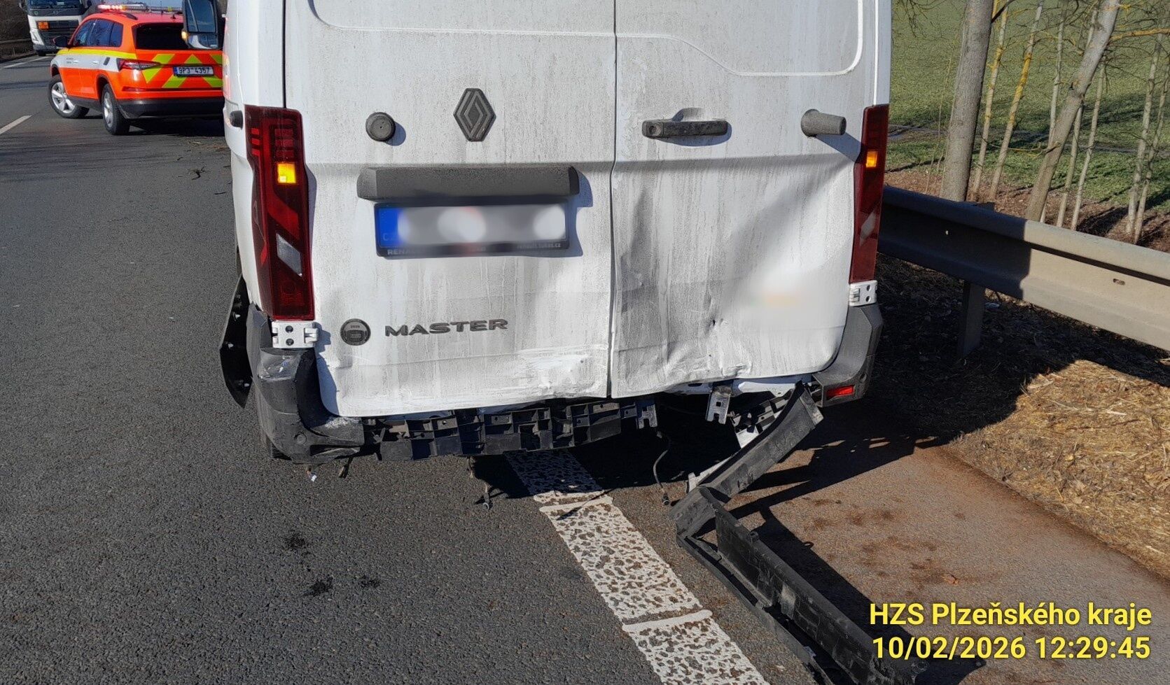 Ve 12:20 se na silnici 20/I na úrovni Chotíkova střetlo osobní auto s dodávkou. „Jedné osobě jsme poskytovali předlékařskou pomoc. Provoz je veden jedním jízdním pruhem," uvedl Petr Poncar.