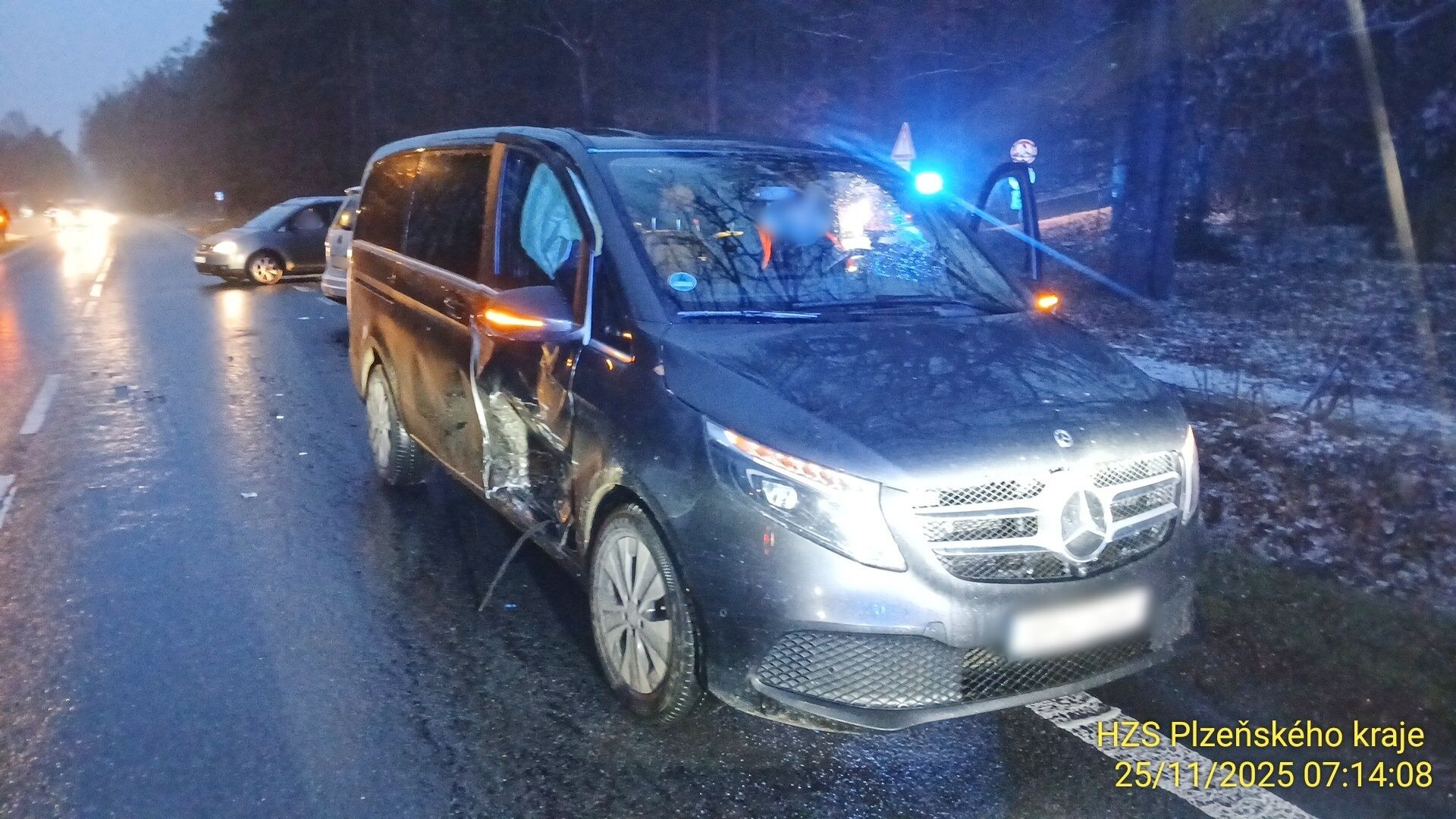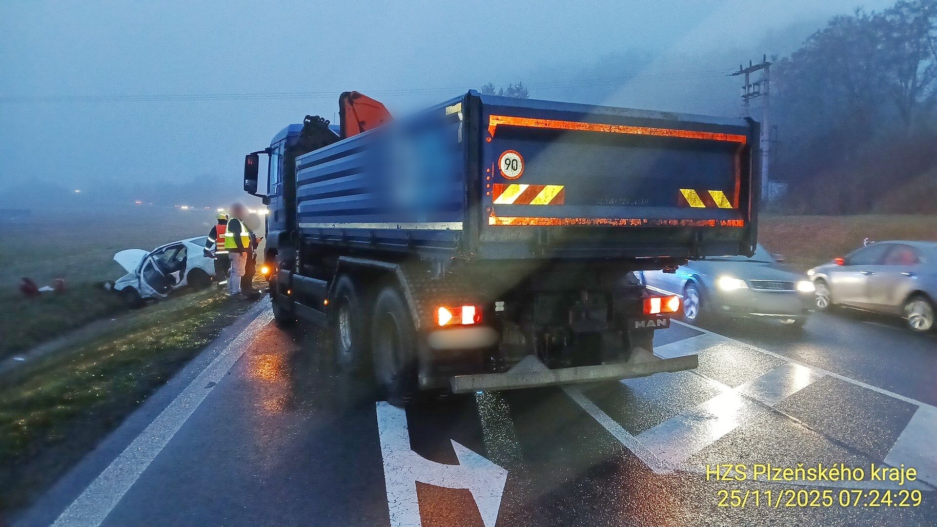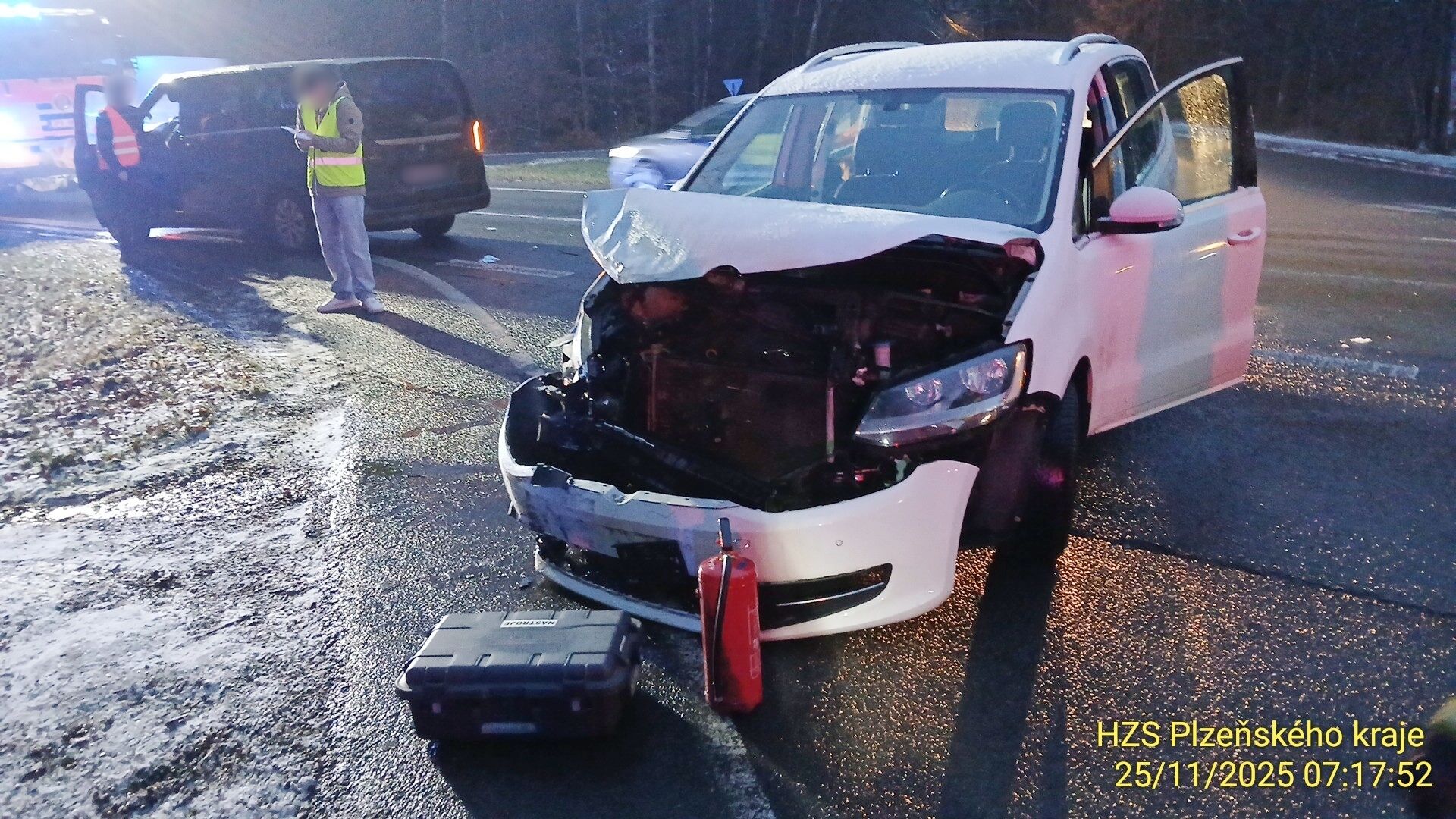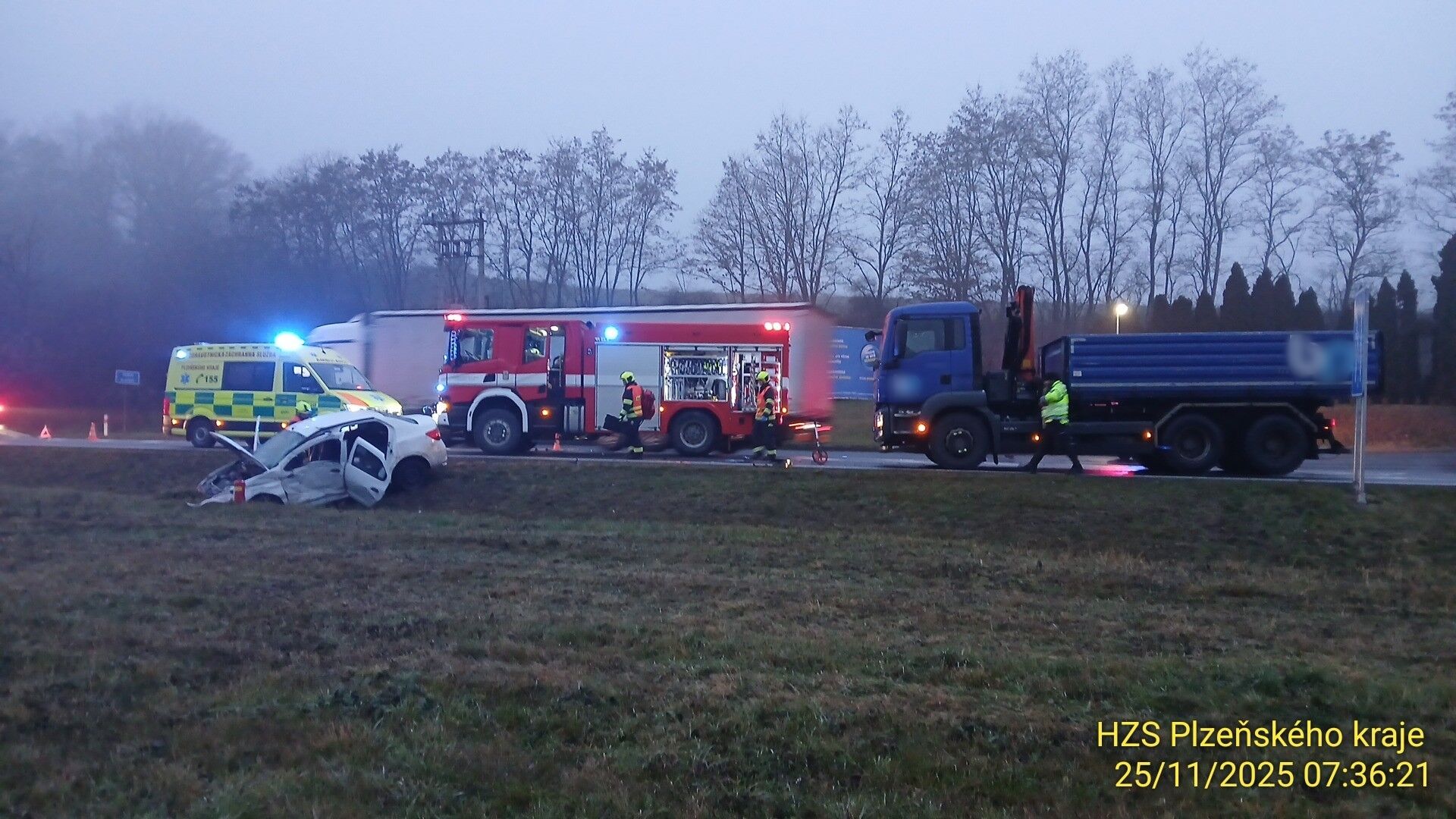 Ranní dopravu v Plzeňském kraji ve středu 25. listopadu zkomplikovaly dvě dopravní nehody, ke kterým došlo v krátkém časovém sledu. Podle informací hasičů zasahovaly jednotky u událostí mezi 6:54 a 7:00 na dvou různých místech regionu.