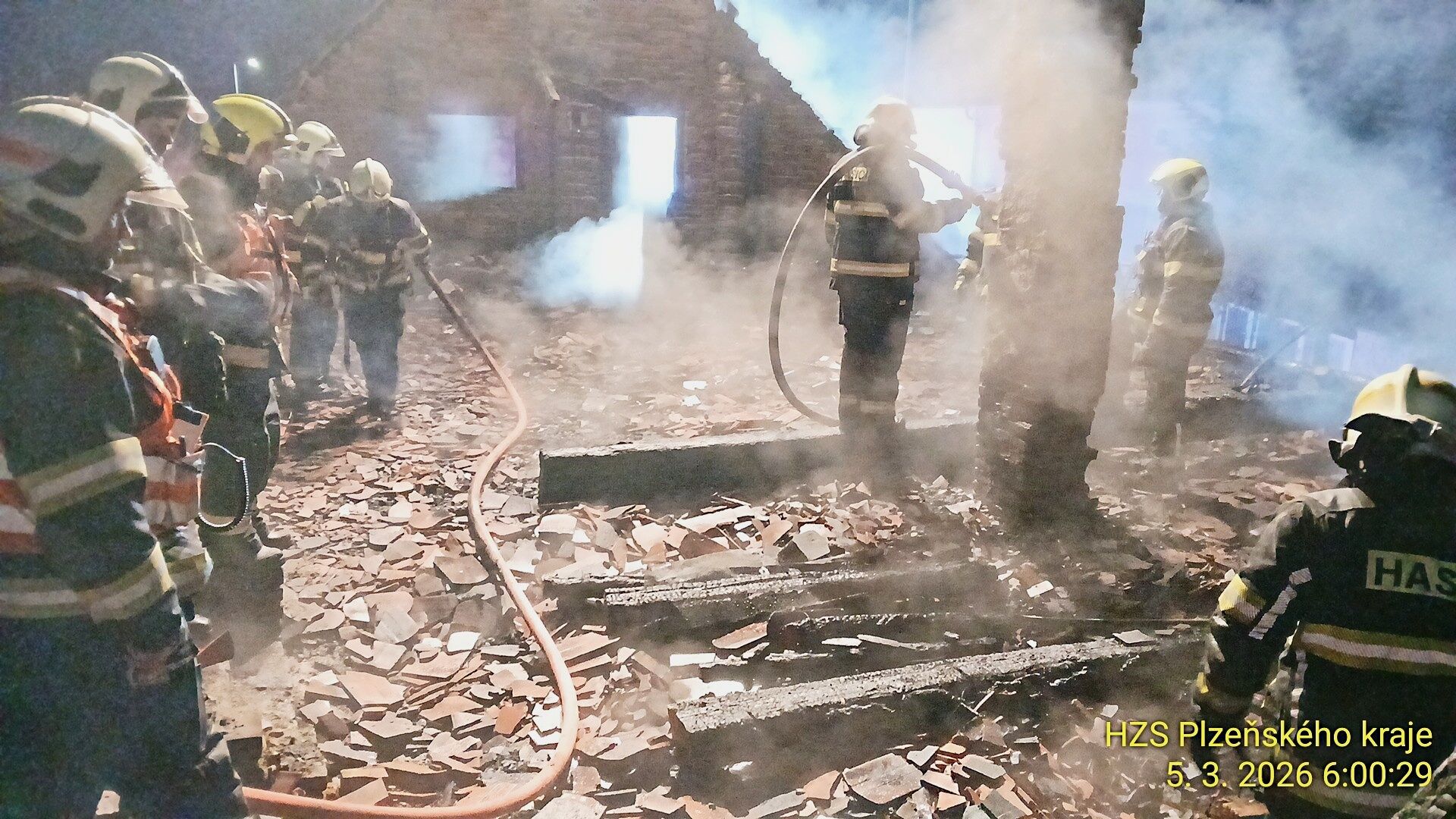 „Oheň zasáhl střechu v plném rozsahu. Při hašení jsme využili výškovou techniku a pro zajištění dostatku hasební vody zřídila místní jednotka čerpací stanoviště,“ uvedl mluvčí krajských hasičů Petr Poncar. Náročný zásah trval několik hodin, přičemž pod kontrolu se podařilo požár dostat až po páté hodině ranní.
