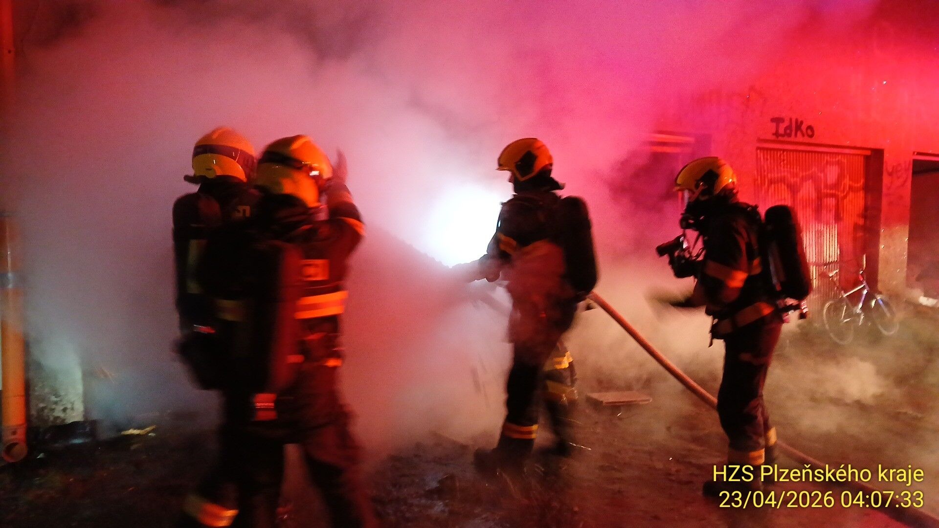 Noční požár garáže v Plzni zaměstnal hasiče - FOTKY