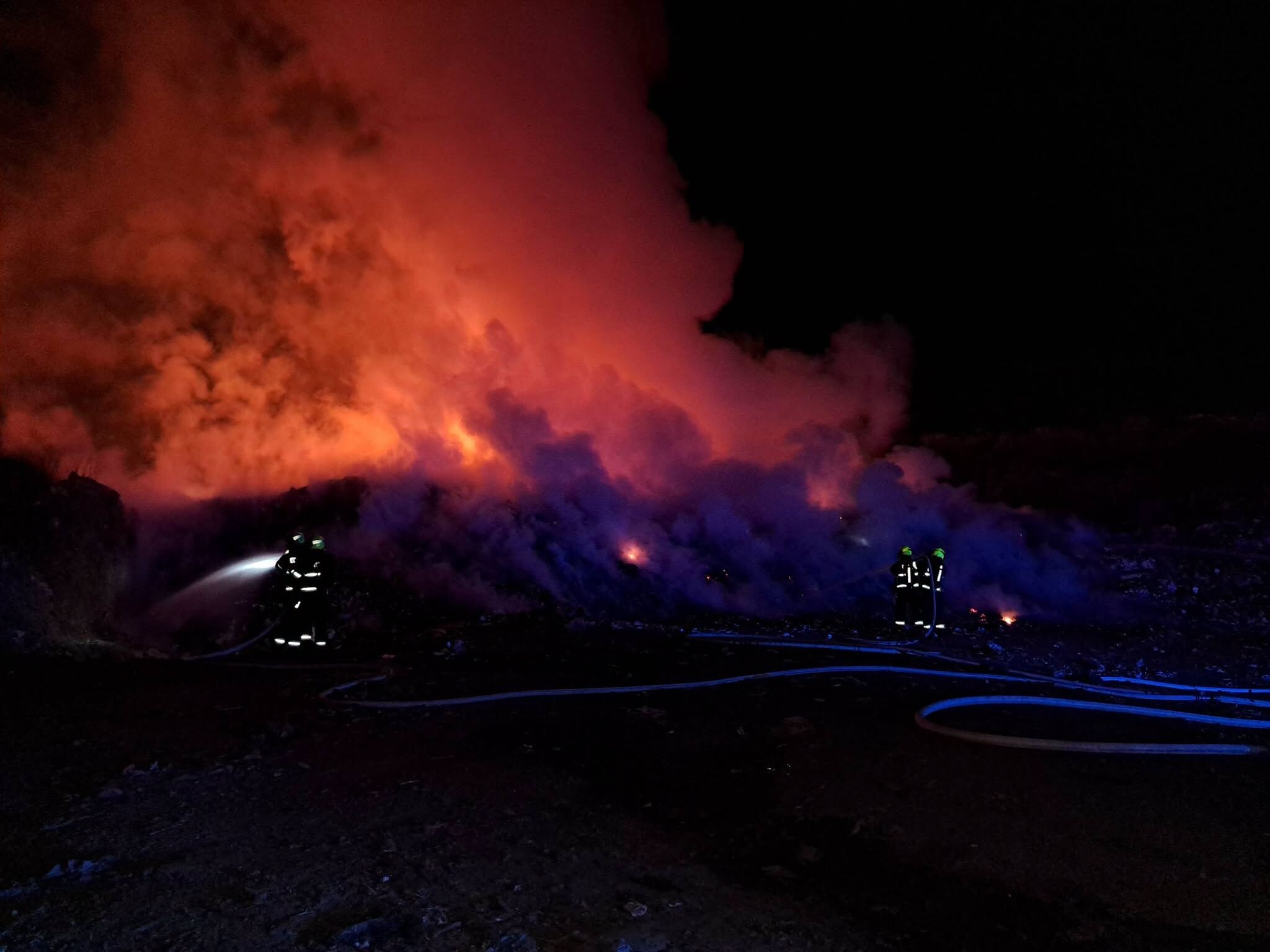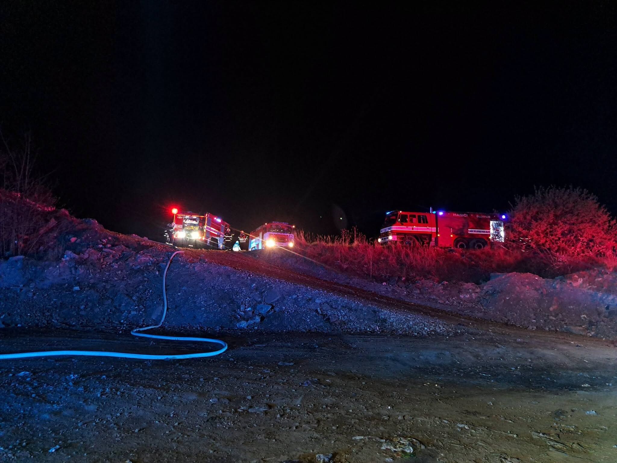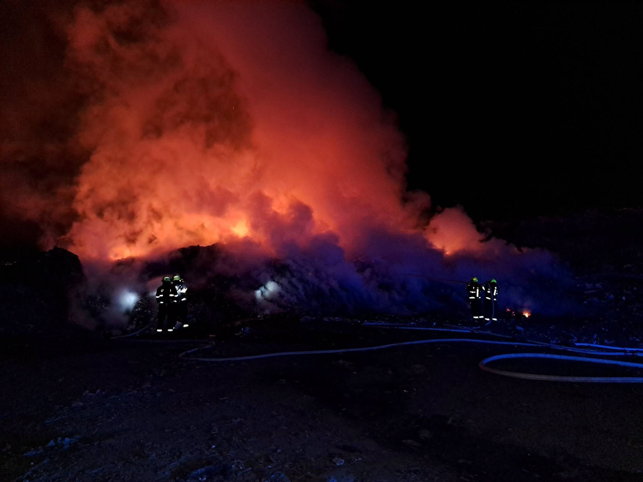 Noční požár skládky u Dobřan. Na místě zasahovalo několik jednotek - FOTKY