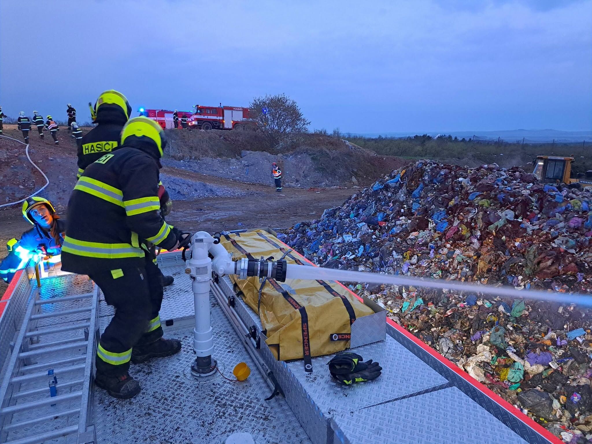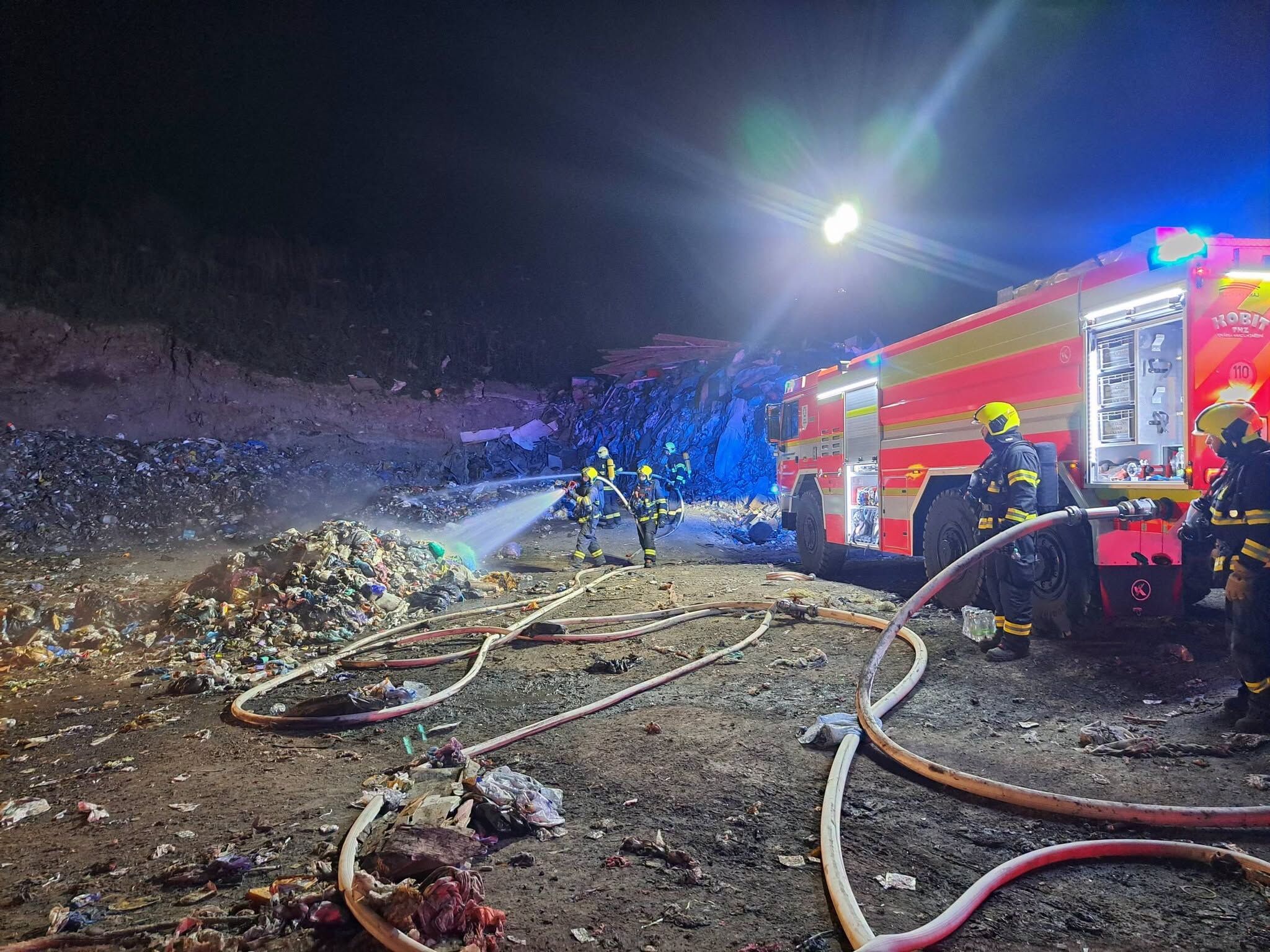 V noci ze soboty 18. na neděli 19. dubna vyjíždělo několik jednotek hasičů k požáru skládky Vysoká u Dobřan.