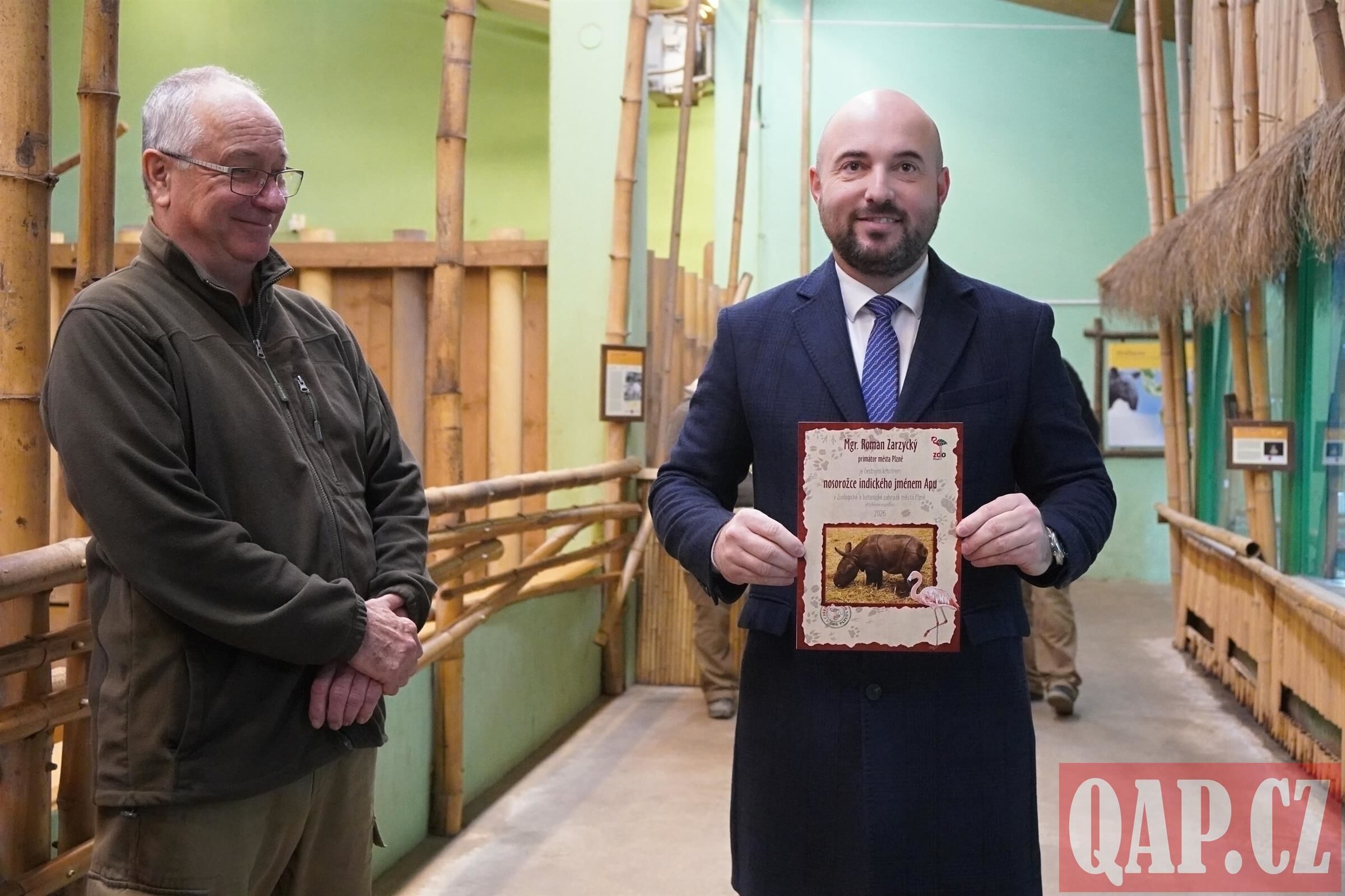 Největší mládě letošního roku z plzeňské zoo má jméno. Nosorožčí sameček, který se narodil 23. listopadu, byl v pátek 19. prosince slavnostně pokřtěn. QAP byl u toho! Přinášíme FOTKY a informace.