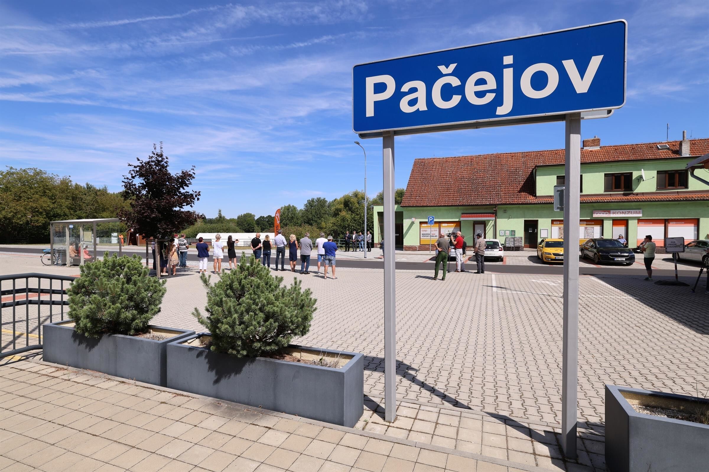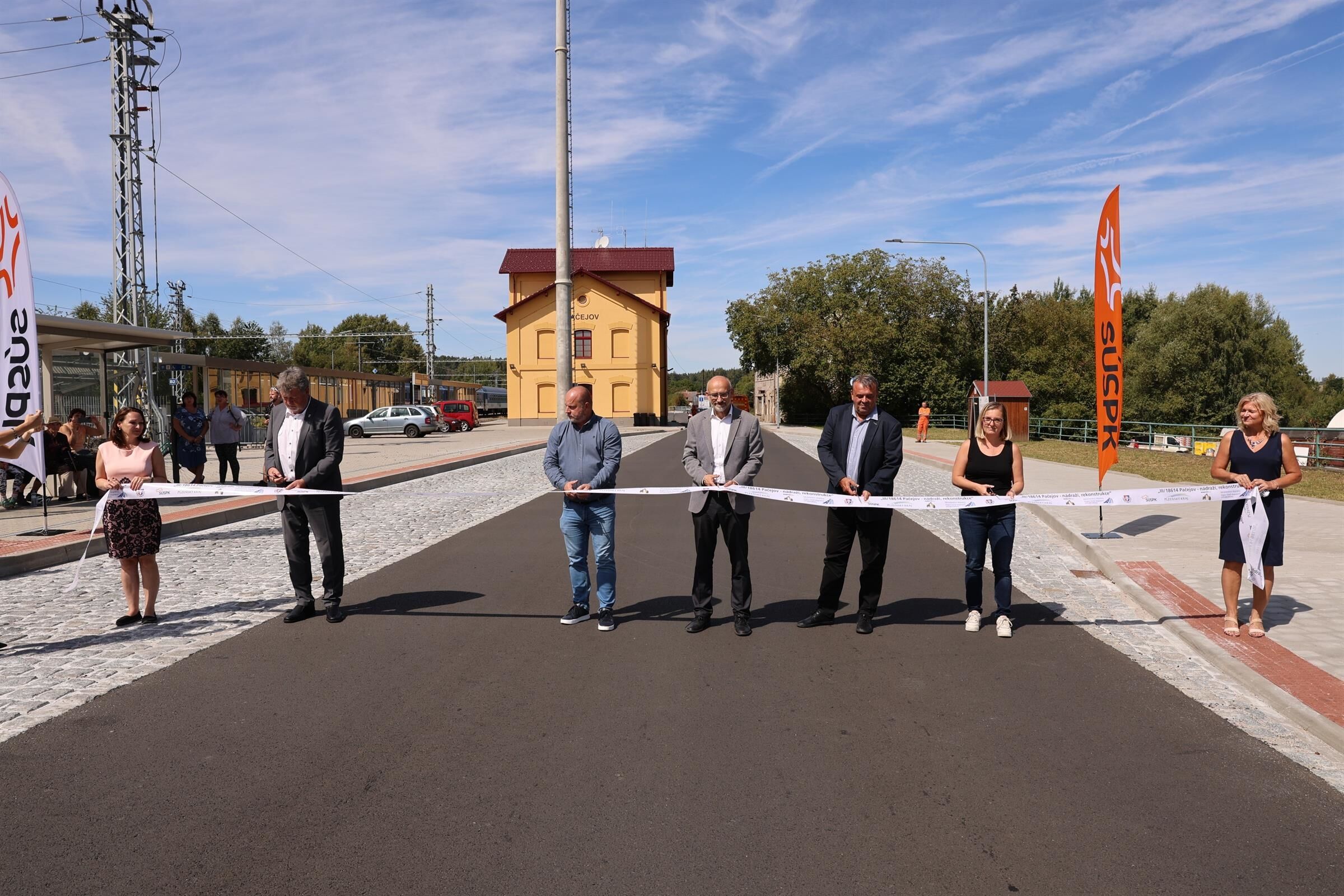 V Pačejově byla v úterý 26. srpna slavnostně otevřena zrekonstruovaná silnice a nové obratiště autobusů. „Stavba byla rozdělena do dvou etap. První se dělala vloni na podzim, druhá letos od jara. Dělali jsme zde kompletní rekonstrukci půlkilometrového úseku silnice třetí třídy, to znamená, že veškeré vrstvy komunikace jsou nové. Je zde nový systém odvodnění přes dešťovou kanalizaci,“ vyjmenoval technický ředitel SÚSPK Martin Vít.
