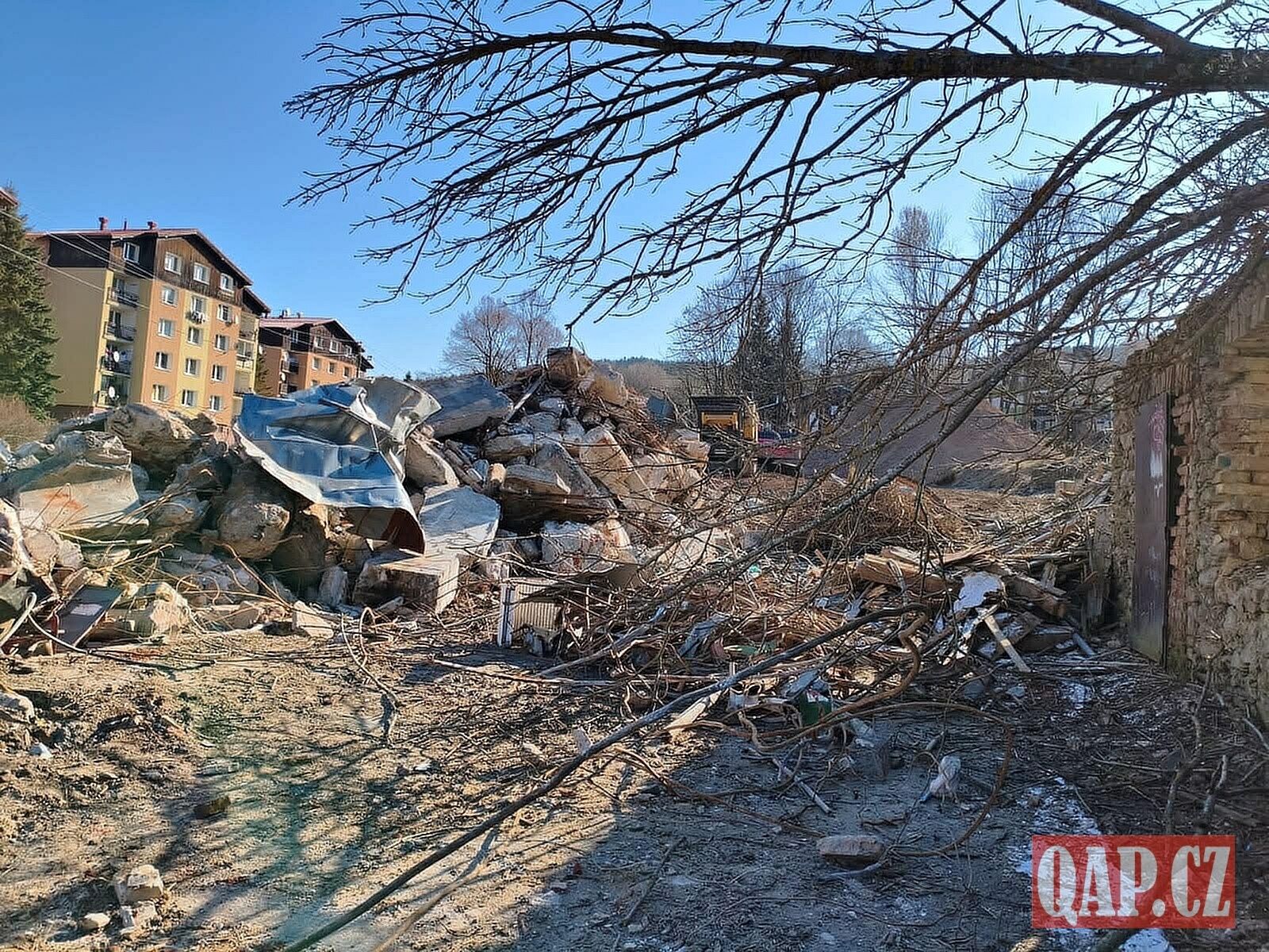 Objekty bývalé továrny Okula v Železné Rudě leží u řeky Řezné (u Sklářské ulice). Továrna tady už dlouhá léta nefunguje a objekty v posledních letech chátraly. Jejich demolice začala vloni v listopadu, v prosinci stála na místě už jen hlavní budova bývalé továrny, po ostatních objektech zůstaly na místě pouze zbytky sutin. Fotografie z prosince najdete ZDE. Teď už je ale situace jiná, k zemi šla i hlavní budova.