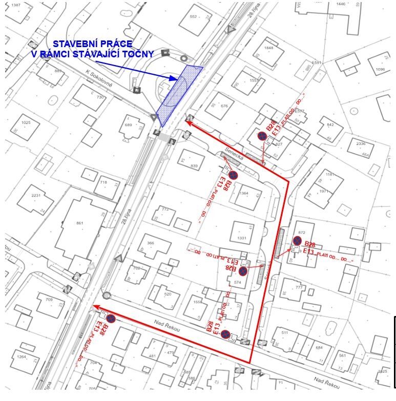 V rámci realizace stavby bude úsek silnice II/231 v ulici 28. října zcela uzavřen pro individuální automobilovou dopravu. Zachován zůstane průjezd veřejné linkové dopravy (MHD a ARRIVA) a složek IZS, a to při minimální průjezdné šířce 3,25 m, v případě potřeby zajištěné i rozšířením vozovky a řízením provozu pomocí světelné signalizace.