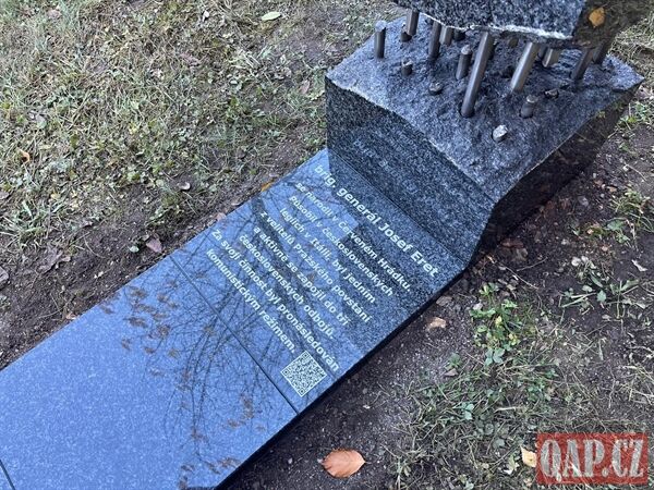 Na desce památníku je i QR kód, který po načtení chytrým telefonem zobrazí stránku městského úřadu, kde se dozvíte podrobnosti o životě brigádního generála Josefa Ereta.
