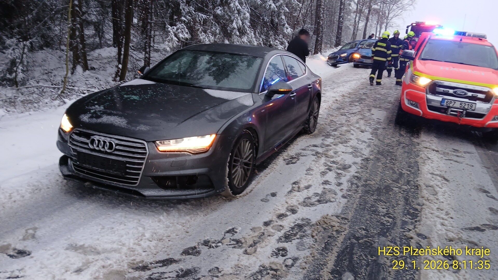 Sníh komplikuje dopravu! Po celém Plzeňském kraji jsou nehody - FOTKY