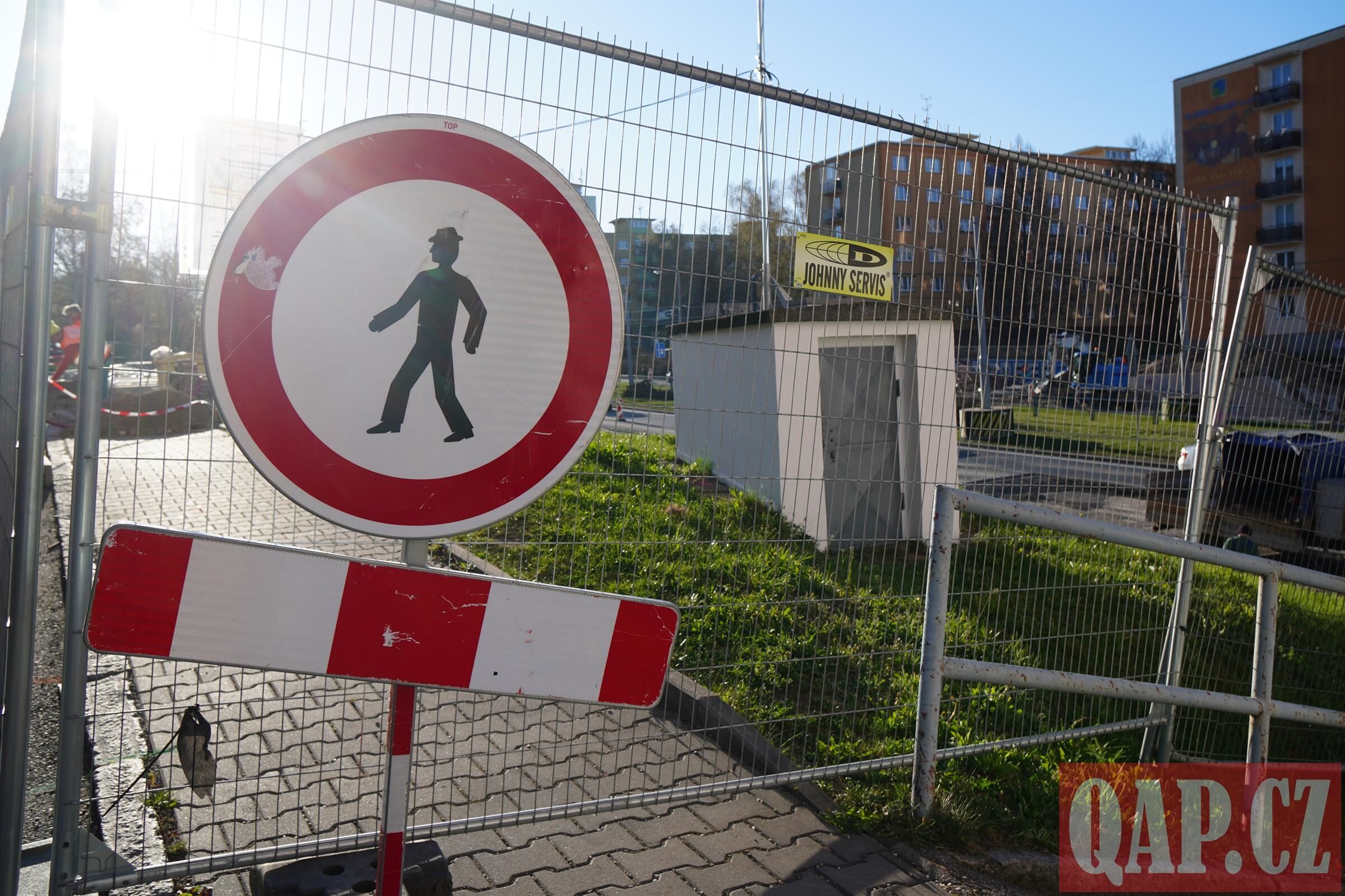 Stavební práce omezují také chodce. Je uzavřená společná stezka pro chodce a cyklisty v ulici Rokycanská v úseku mezi ulicí Revoluční a Dlouhá a chodníky podél staveniště.