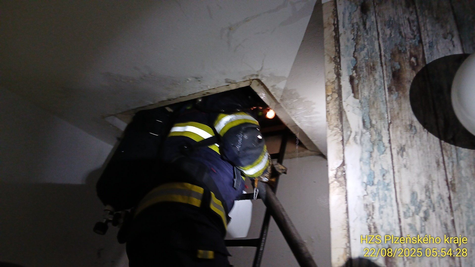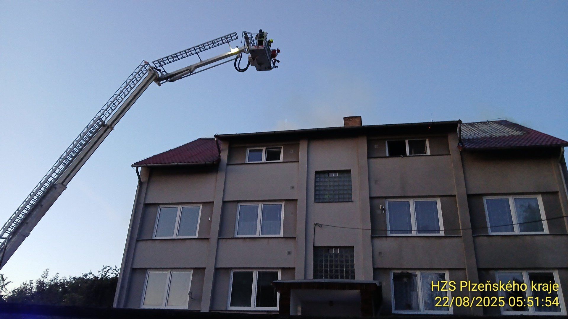 Hasiči vyjeli v pátek 22. srpna v 5:13 ráno k požáru v bytovém domě v obci Chříč na severním Plzeňsku.