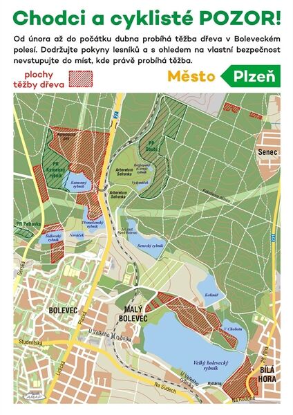 Oblíbené trasy kolem Boleveckých rybníků i na Nové Hospodě obsadili lesníci. V plzeňských městských lesích začala plánovaná zimní údržba. Připravte se na krátkodobá omezení.