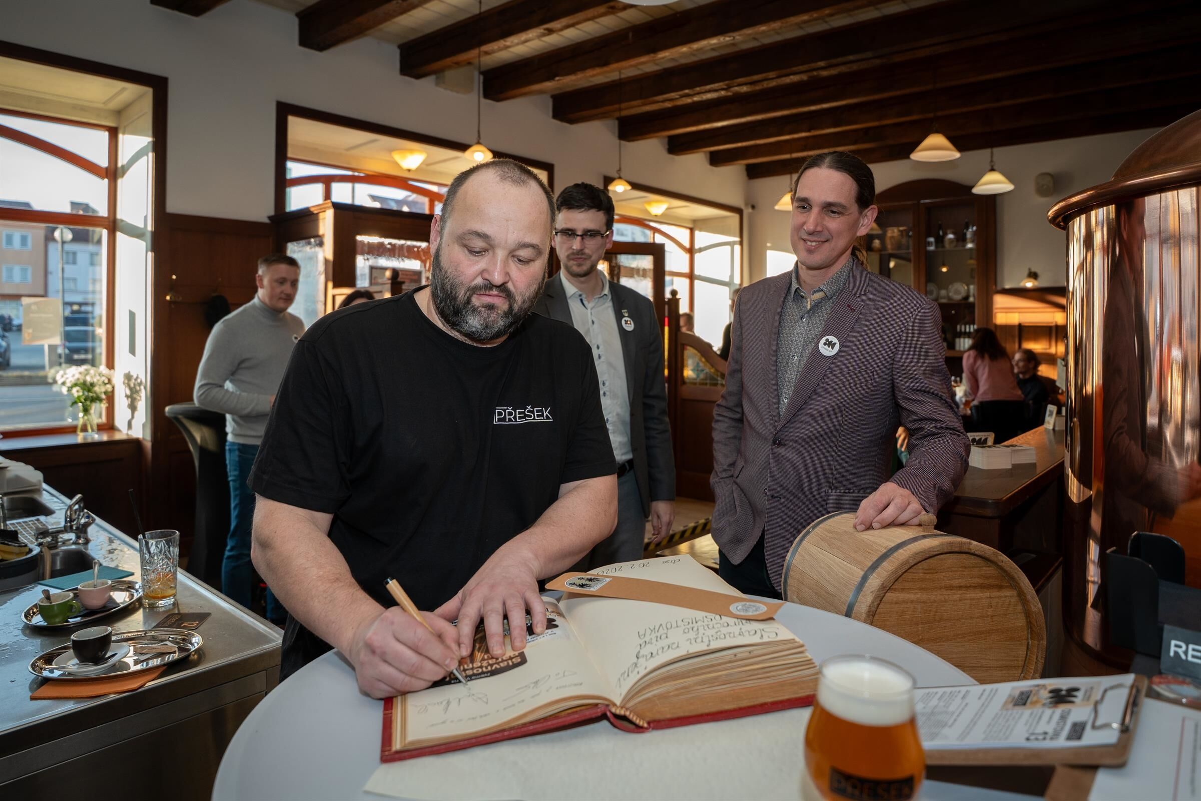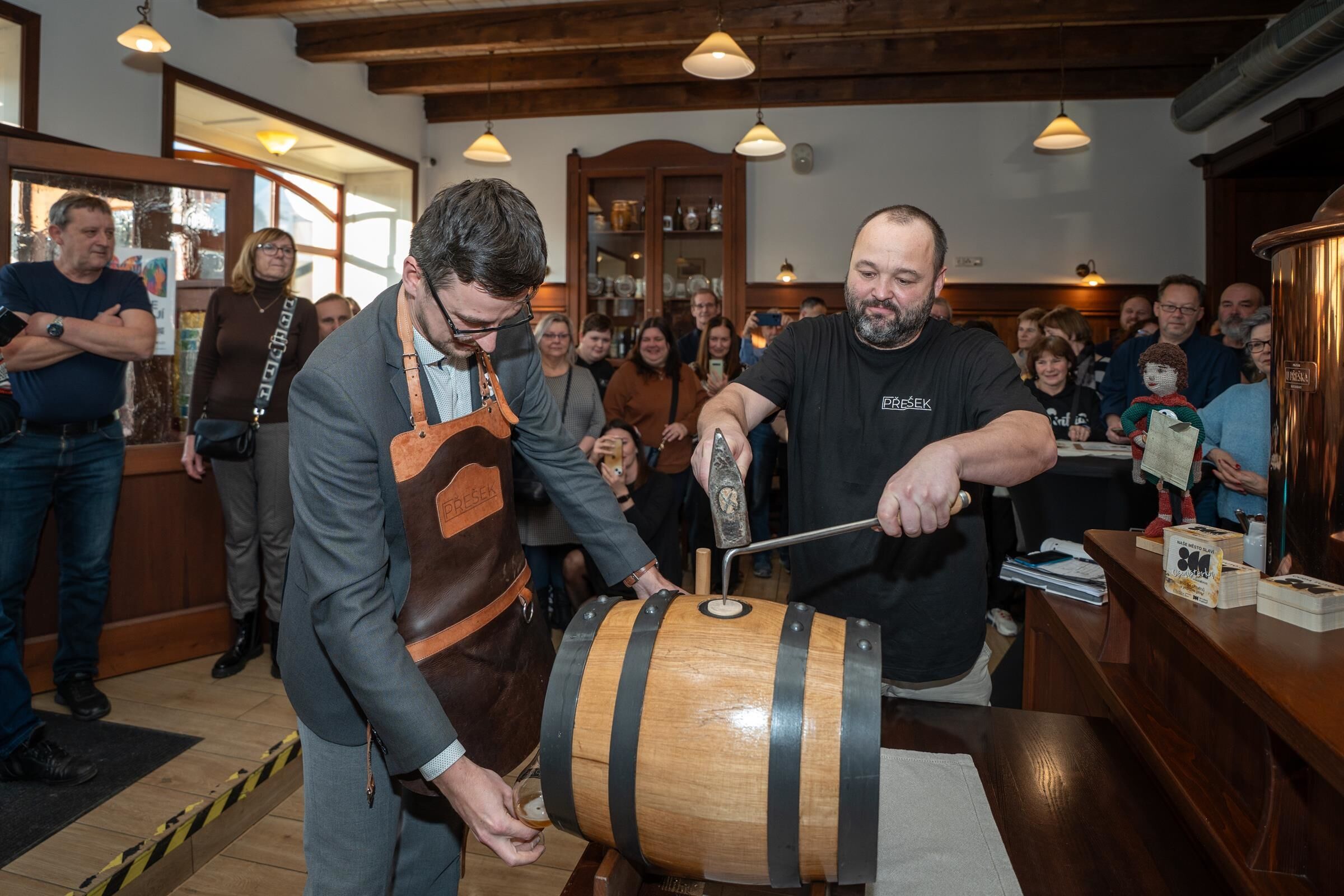V minipivovaru Přešek bylo v pátek 20. února rušno. Důvodem bylo odhalení piva, které vzniklo u příležitosti osmi století historie města. První soudek výročního ležáku s názvem Osmistovka slavnostně narazil starosta Přeštic Tomáš Chmelík. Podívejte se na fotky!