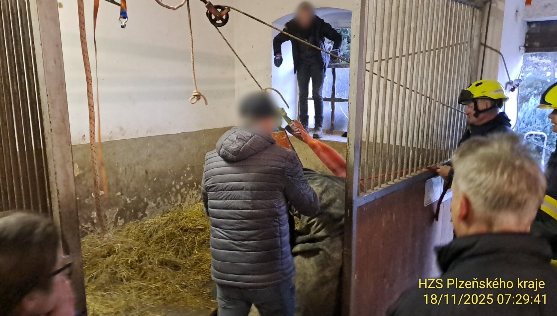 V úterý 18. listopadu vyjeli hasiči krátce před šestou hodinou ranní k padlému ustájenému koni v boxu na statku Trnová – Vísky.