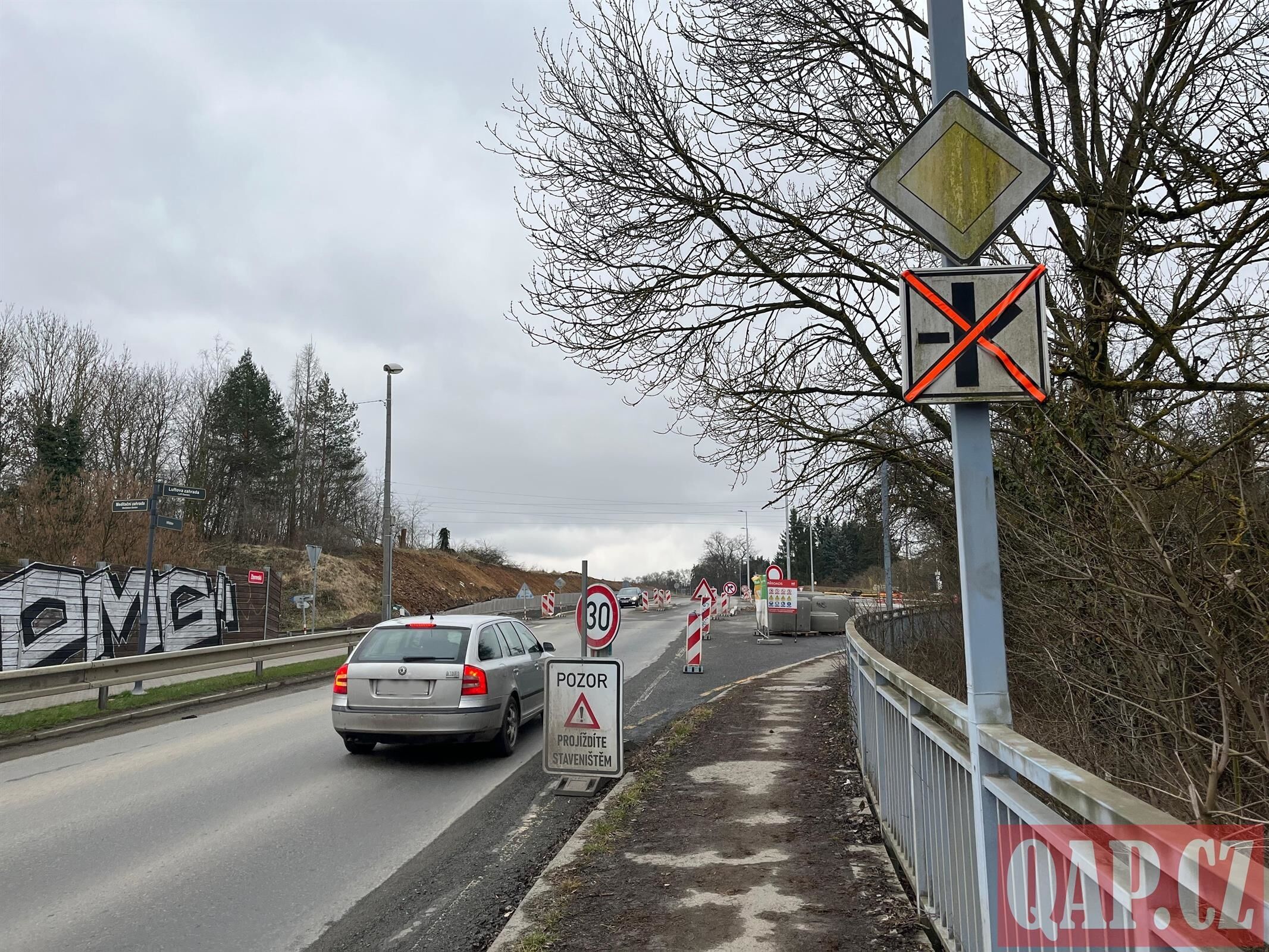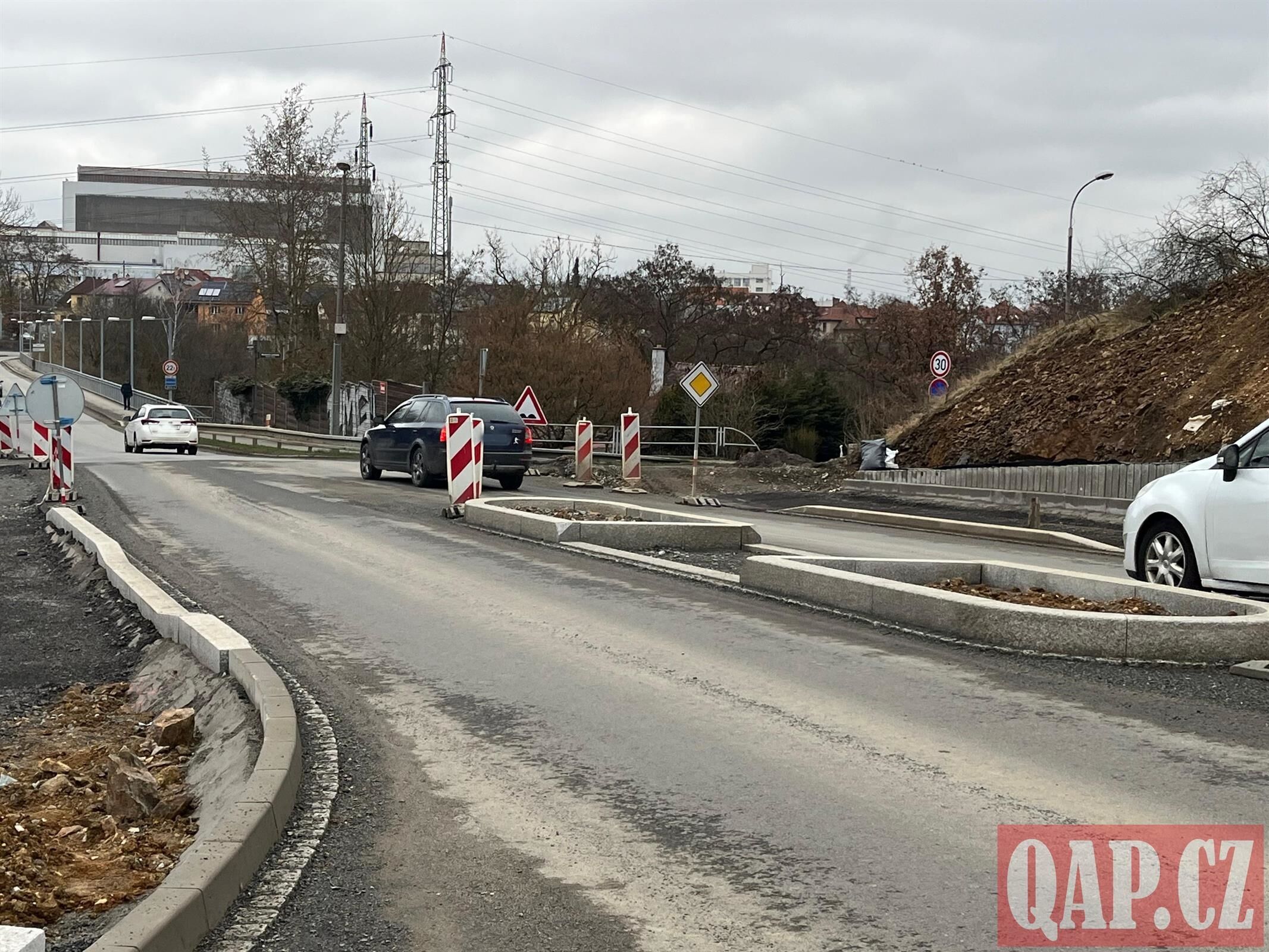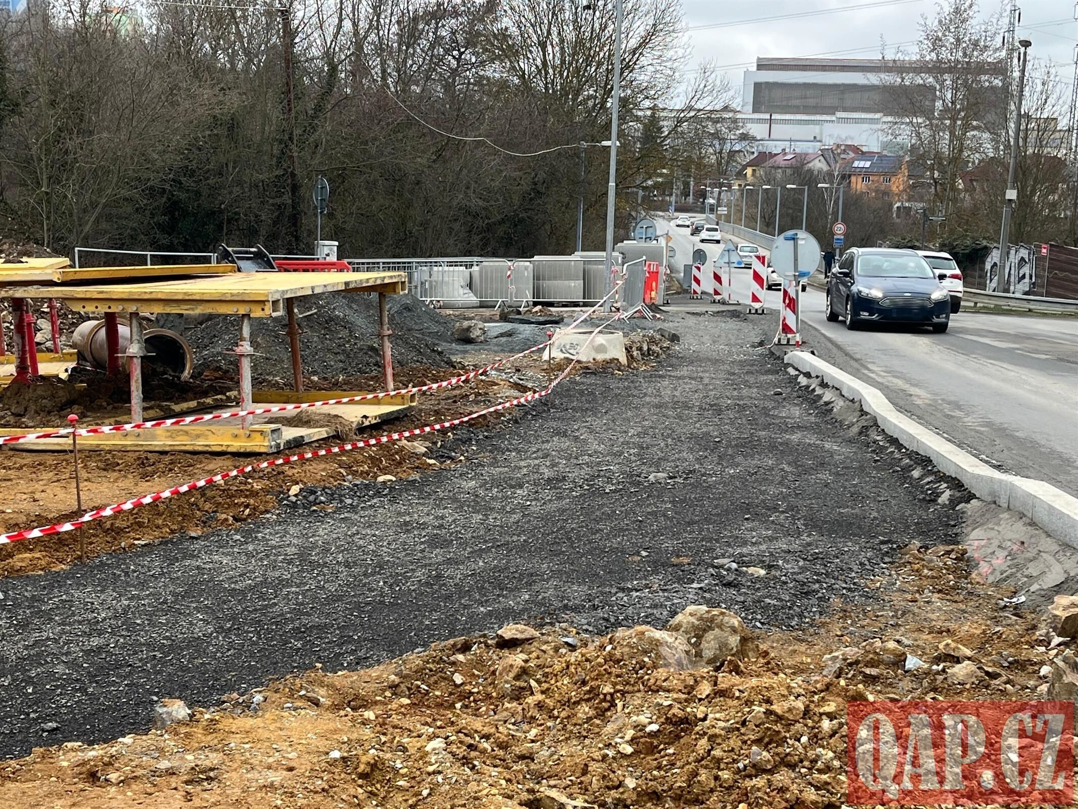 Rekonstrukce křižovatky u Tyršova mostu pokračuje. Práce zdržela skála - FOTKY