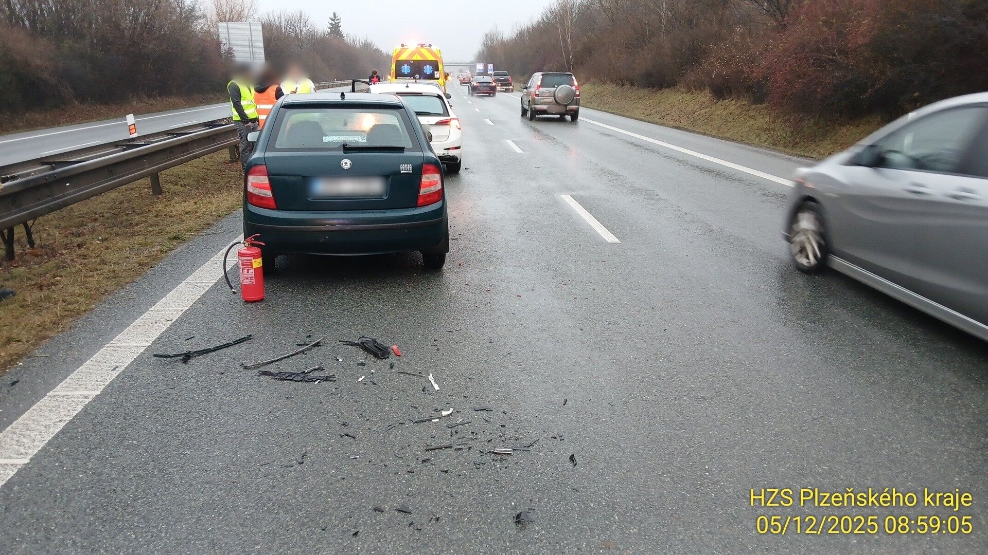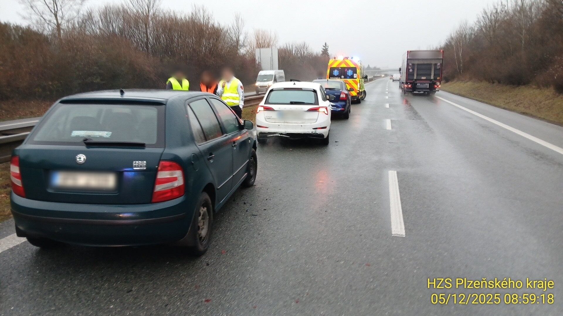 Na přivaděči u Plzně-Litic ve směru na Plzeň došlo v pátek 5. prosince k dopravní nehodě tří osobních automobilů.