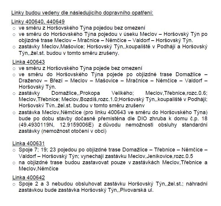 „V loňském roce proběhla oprava komunikace v úseku od společnosti Karpem po výjezd z města Horšovský Týn. V letošním roce bude dokončena oprava i zbývající části celého úseku. V rámci stavebních prací dojde nejen k rekonstrukci povrchu vozovky, ale také k rozsáhlejším úpravám pod povrchem komunikace, kdy rekonstrukcí projde také kanalizace a vodovodní řady,“ uvedl k pokračování stavby mluvčí Ředitelství silnic a dálnic Adam Koloušek.