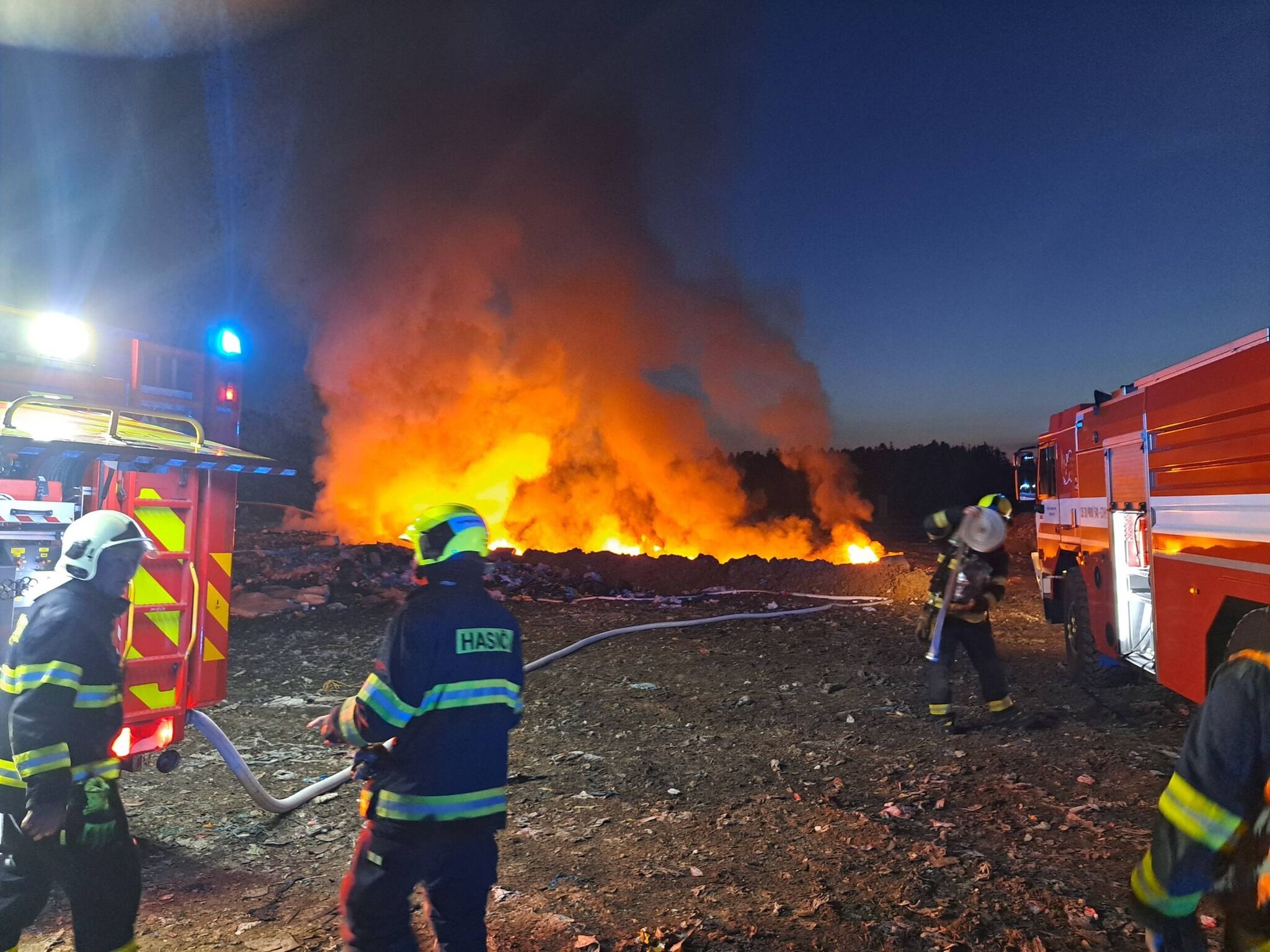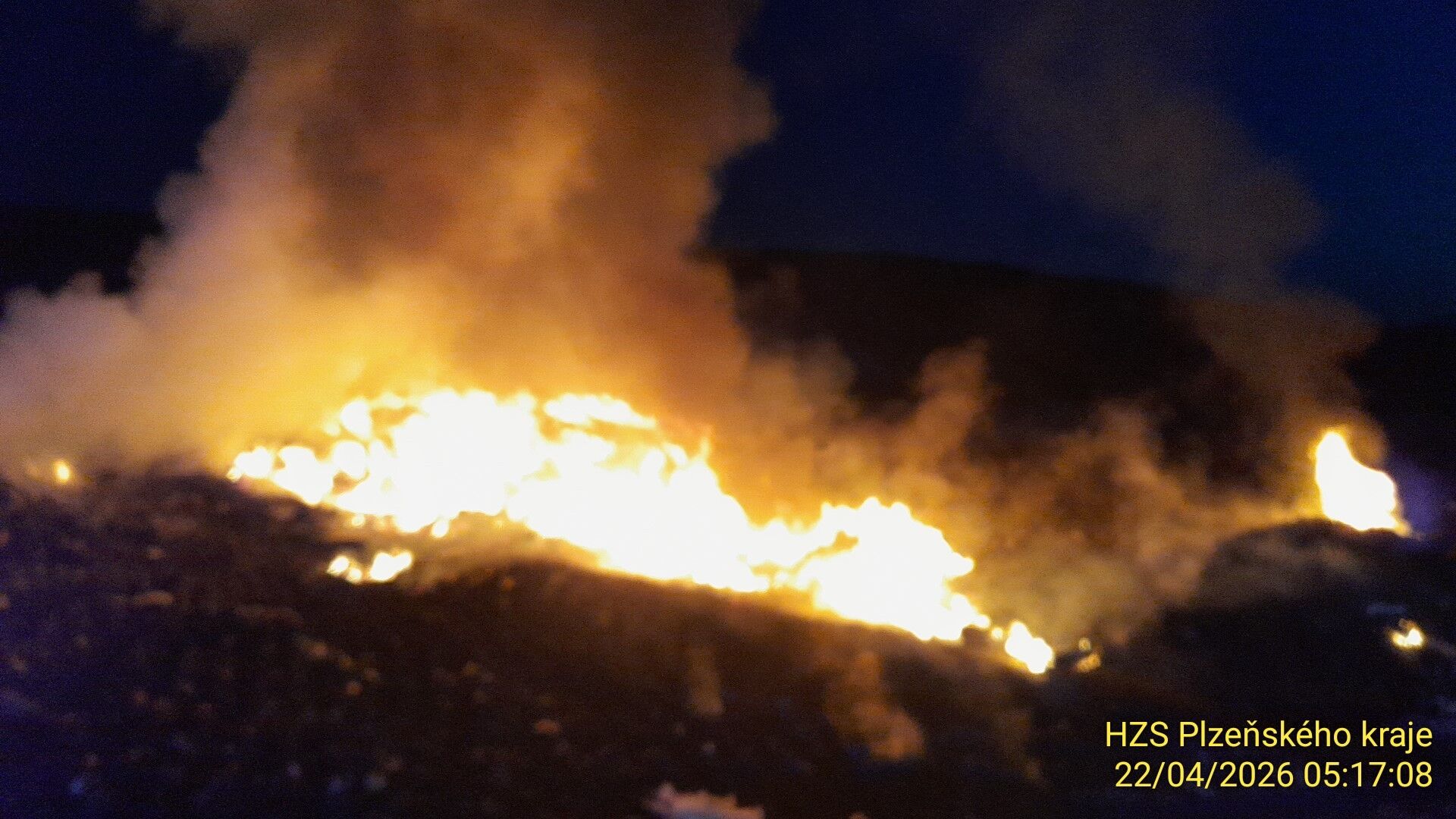 Skládka u Dobřan byla opět v plamenech. Hasiči tam vyjížděli uprostřed noci - FOTKY