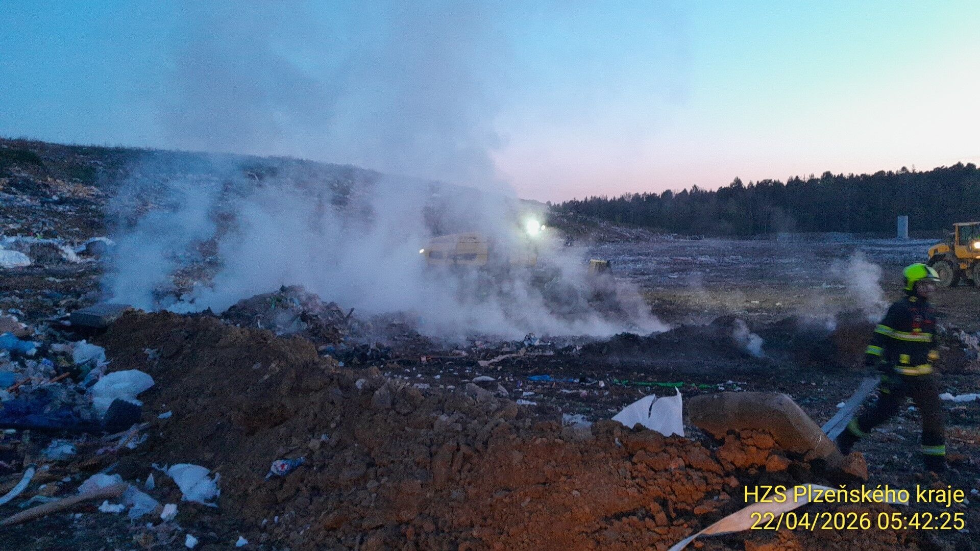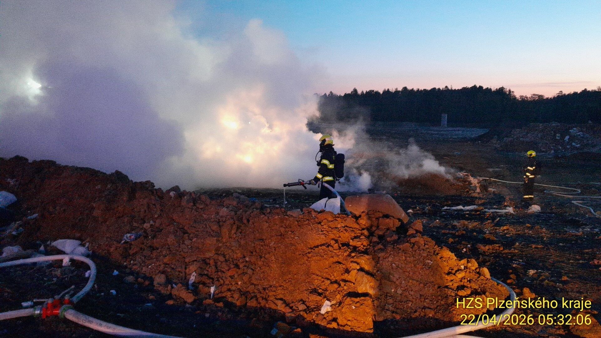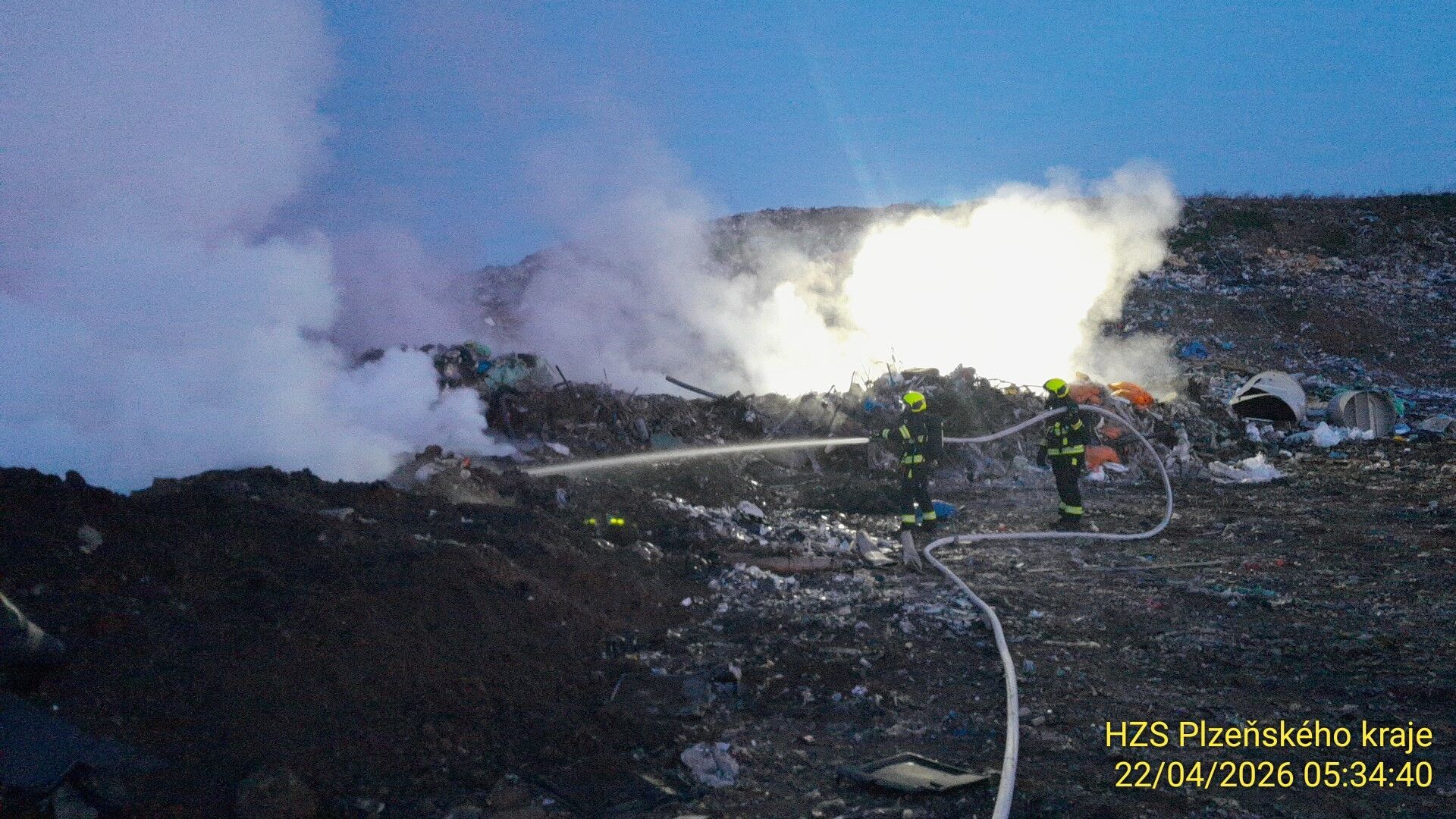 Jen pár dní po víkendovém požáru skládky Vysoká u Dobřan se situace opakovala. Hasiči měli ve středu 22. dubna opět velmi brzký budíček. Plameny zasáhly plochu o rozměru zhruba 20x50 metrů, hořely především plasty.
