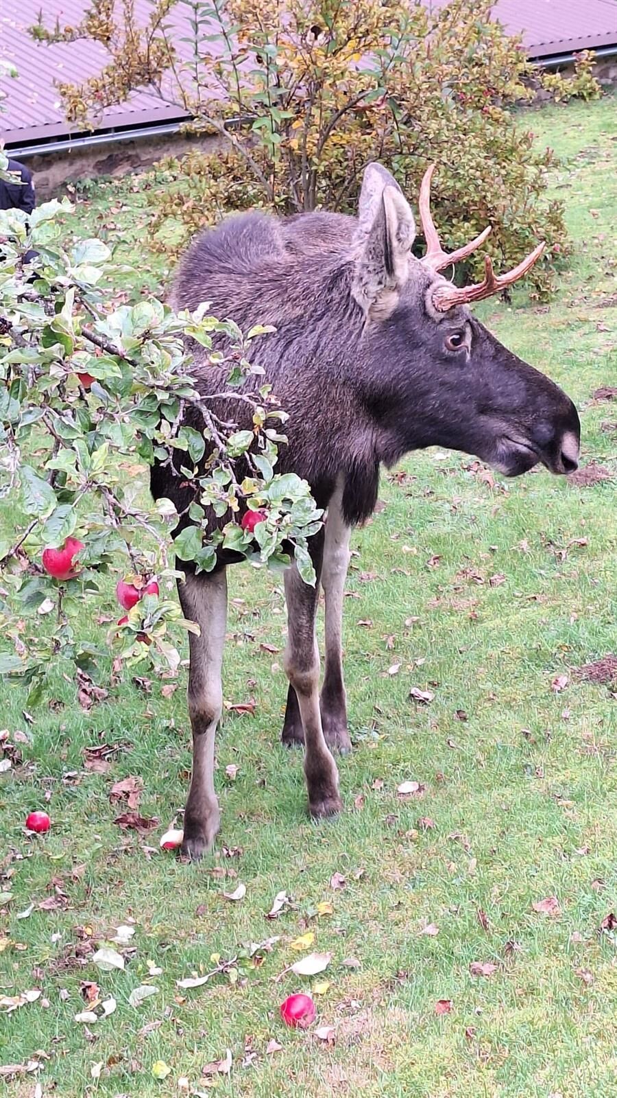 Slavný los Emil dorazil na Klatovsko, na zahradě si pochutnával na jablkách