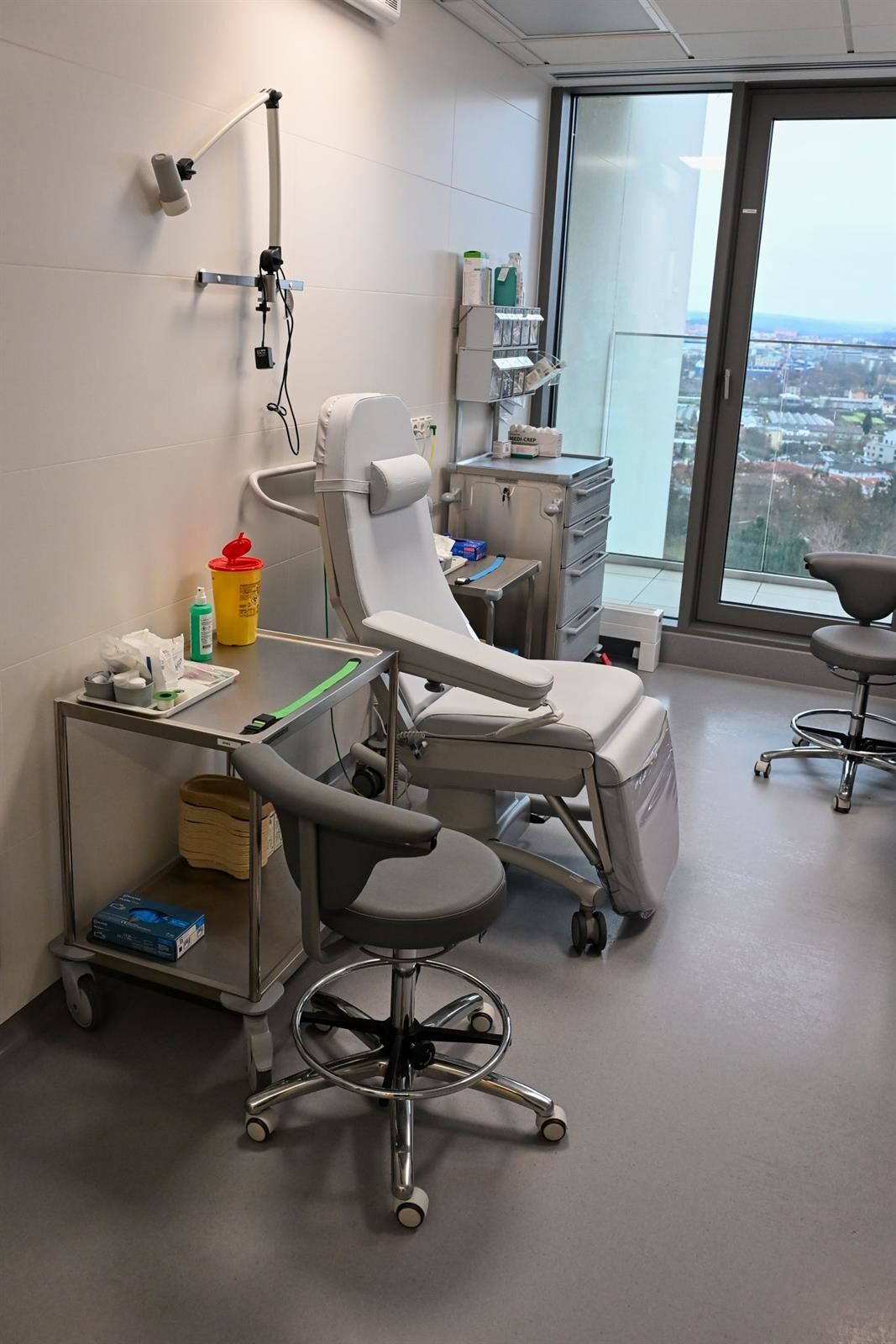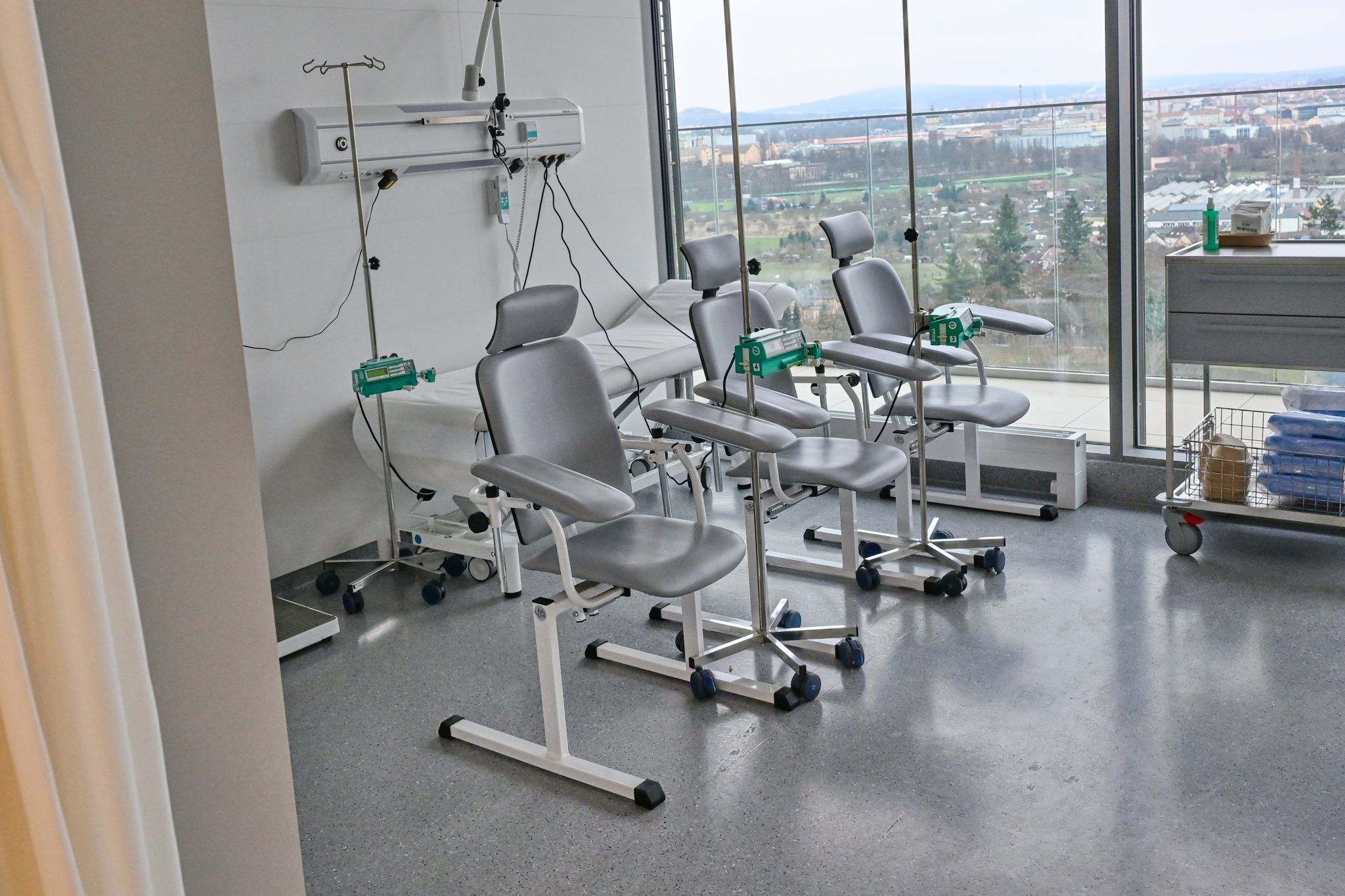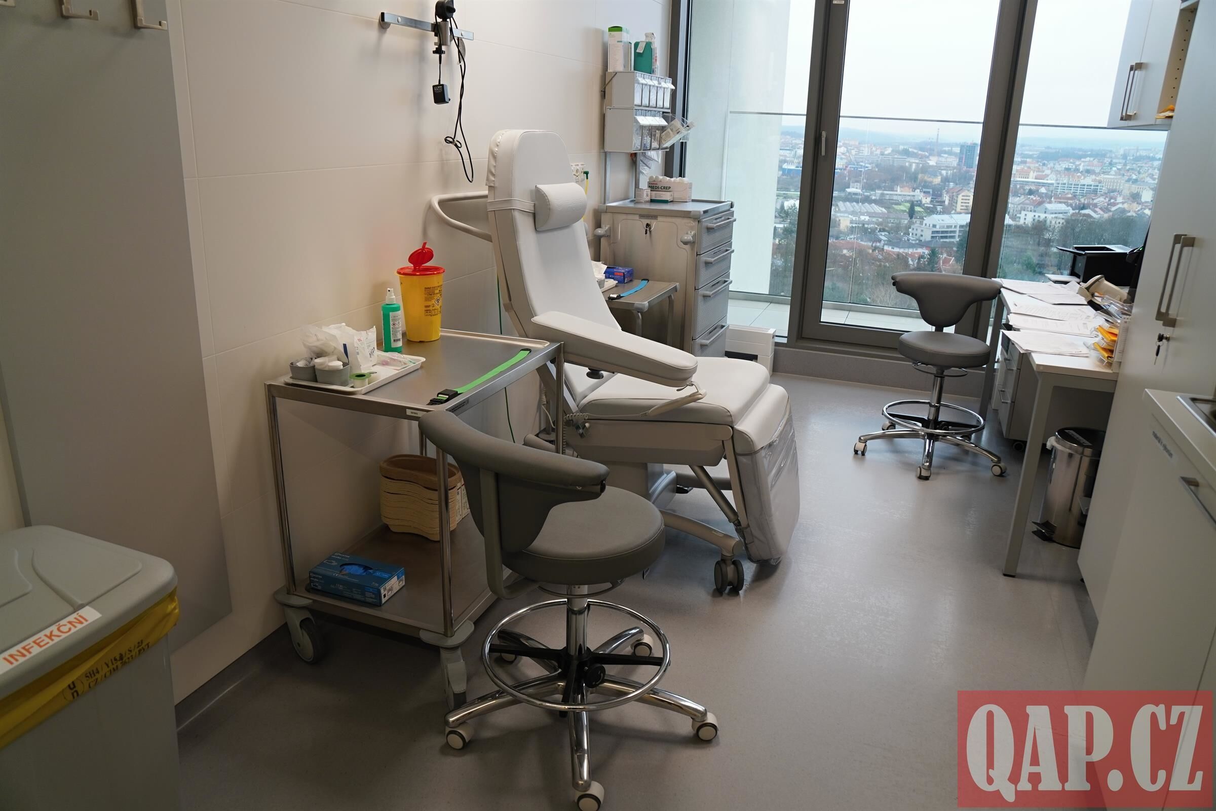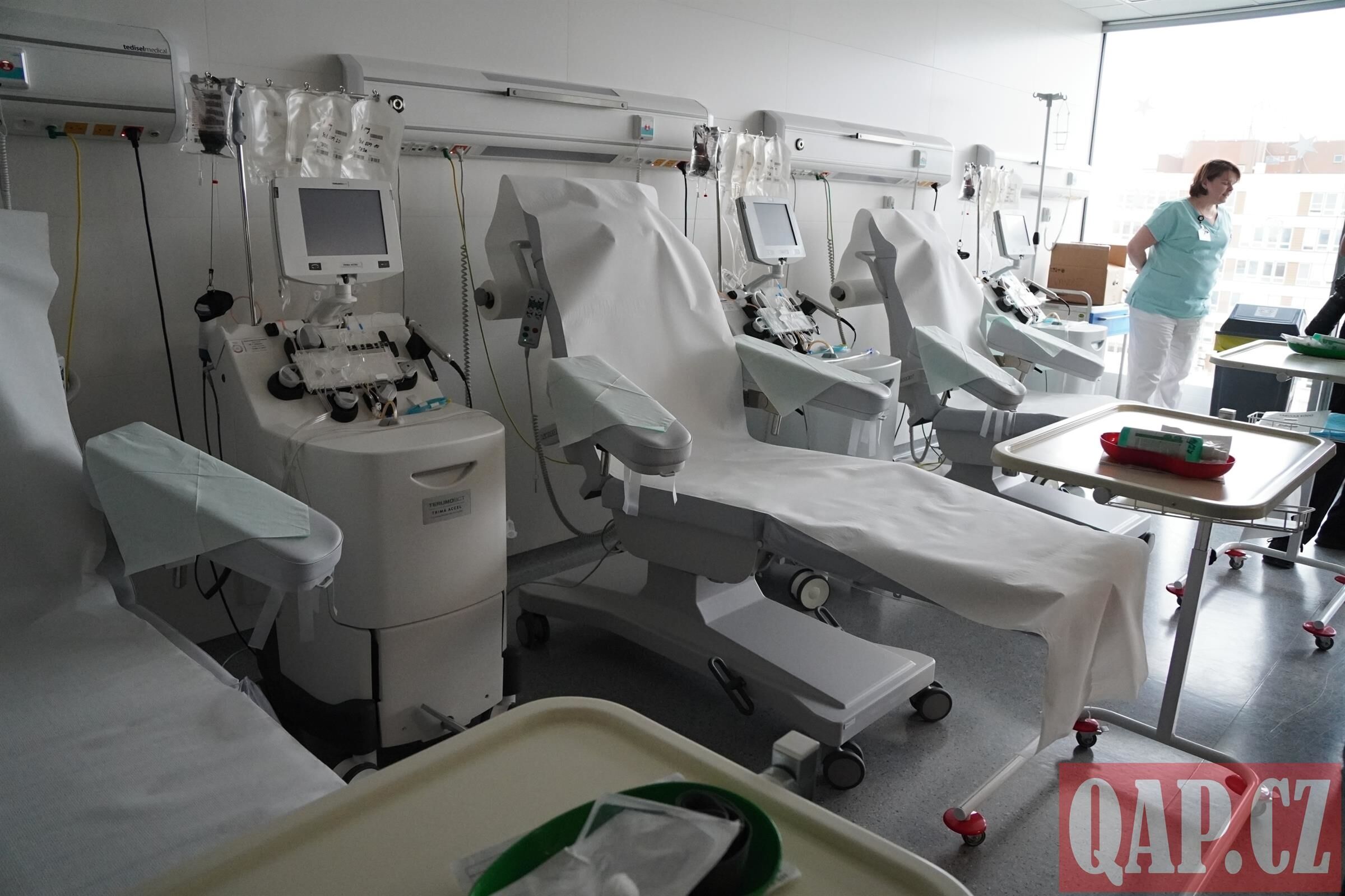 Deváté patro je zcela medicínské – ambulance, denní stacionář, laboratorní a aferetické centrum pro odběry krvetvorných buněk. „Medicínská část je otevřená od léta. Vždy když tam přijdu, říkám si, jestli se mi to nezdá. Když vidím pacienty v novém prostoru, říkám si, že jsme udělali dobře. Je to pro ně to nejlepší, co mohou dostat, když už musí bojovat s tak závažným onemocněním,“ říká primář Hematologicko-onkologického oddělení FN Plzeň a vedoucí lékař ČNRDD MUDr. Pavel Jindra.