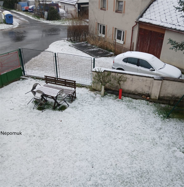Tachovsko a jižní Plzeňsko: Bílo hlásí také Stříbro nebo Nepomuk. „Nepomuk taky sněží,“ potvrzuje Vladimíra H.