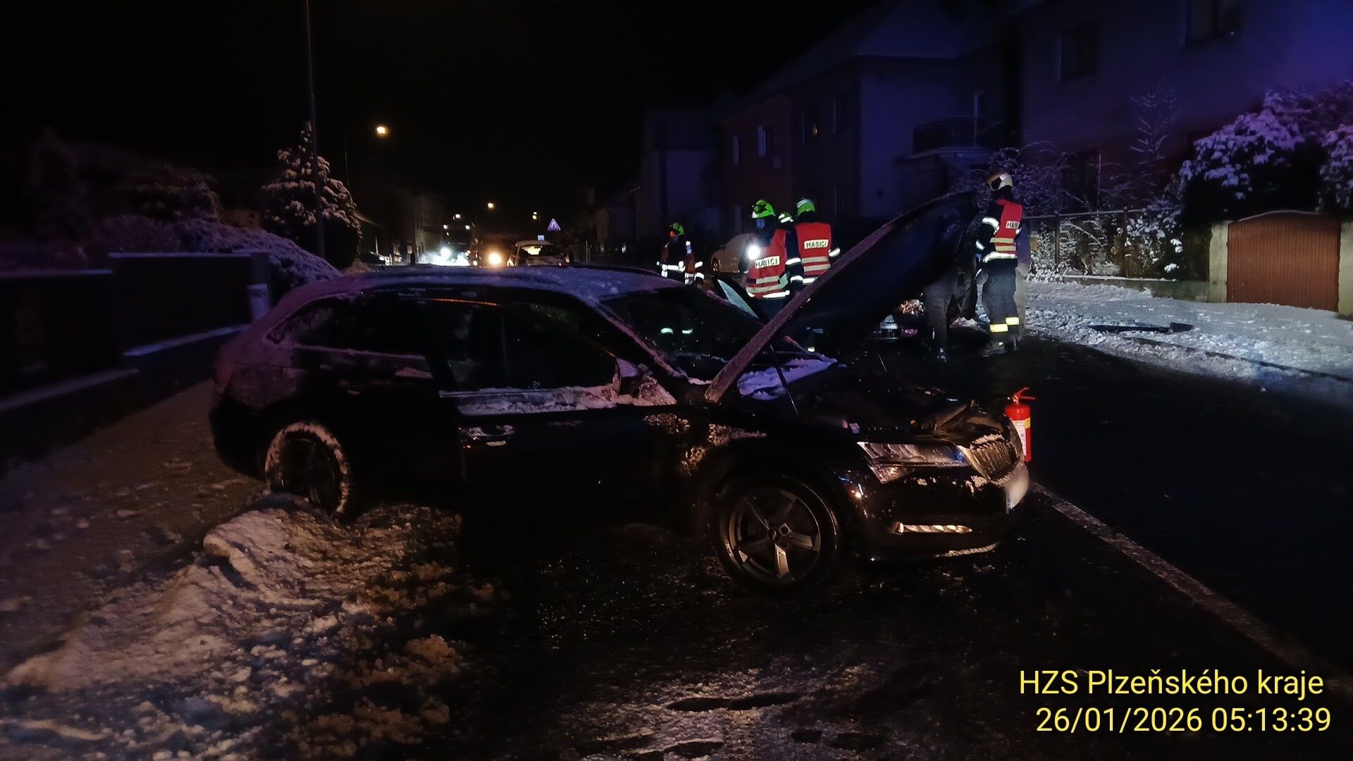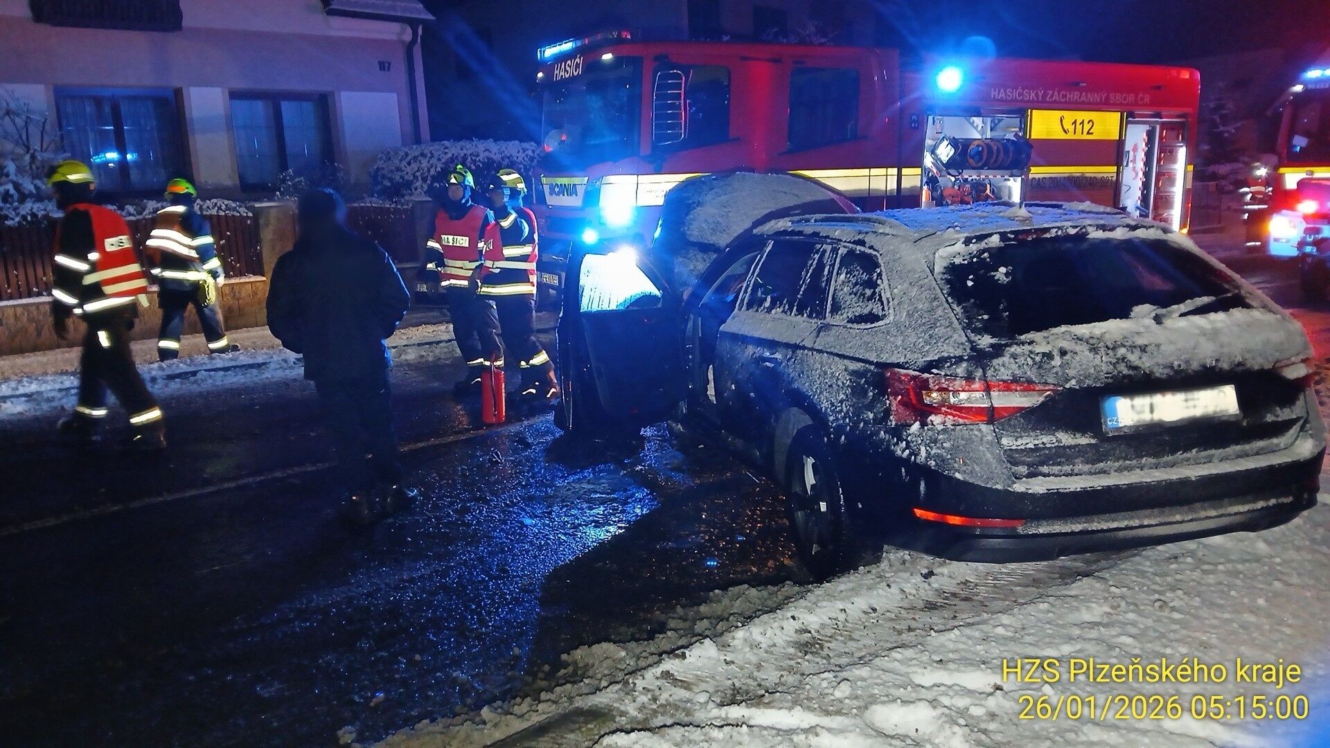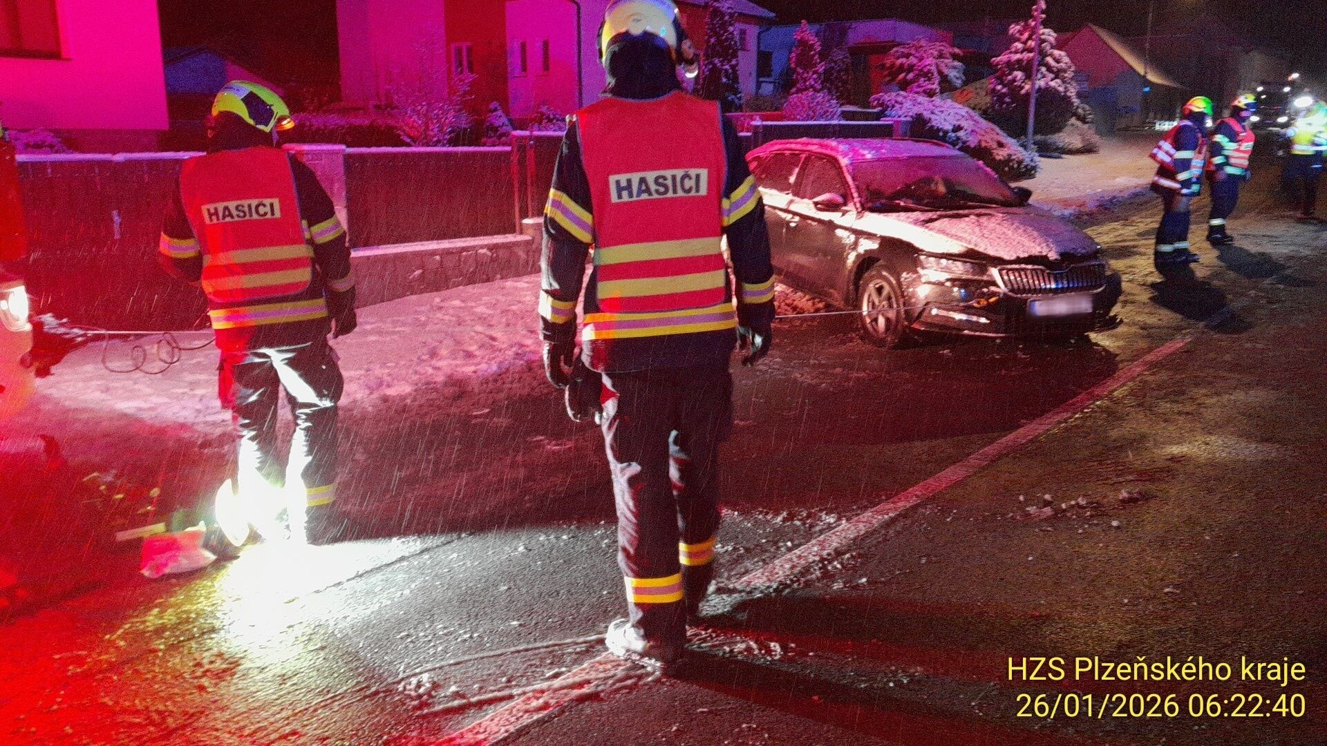 Západní Čechy zasáhlo očekávané intenzivní sněžení a mráz, které od nedělního večera komplikují situaci na silnicích. Plzeňští hasiči a záchranáři mají za sebou noc plnou výjezdů. Bourá se i dnes.