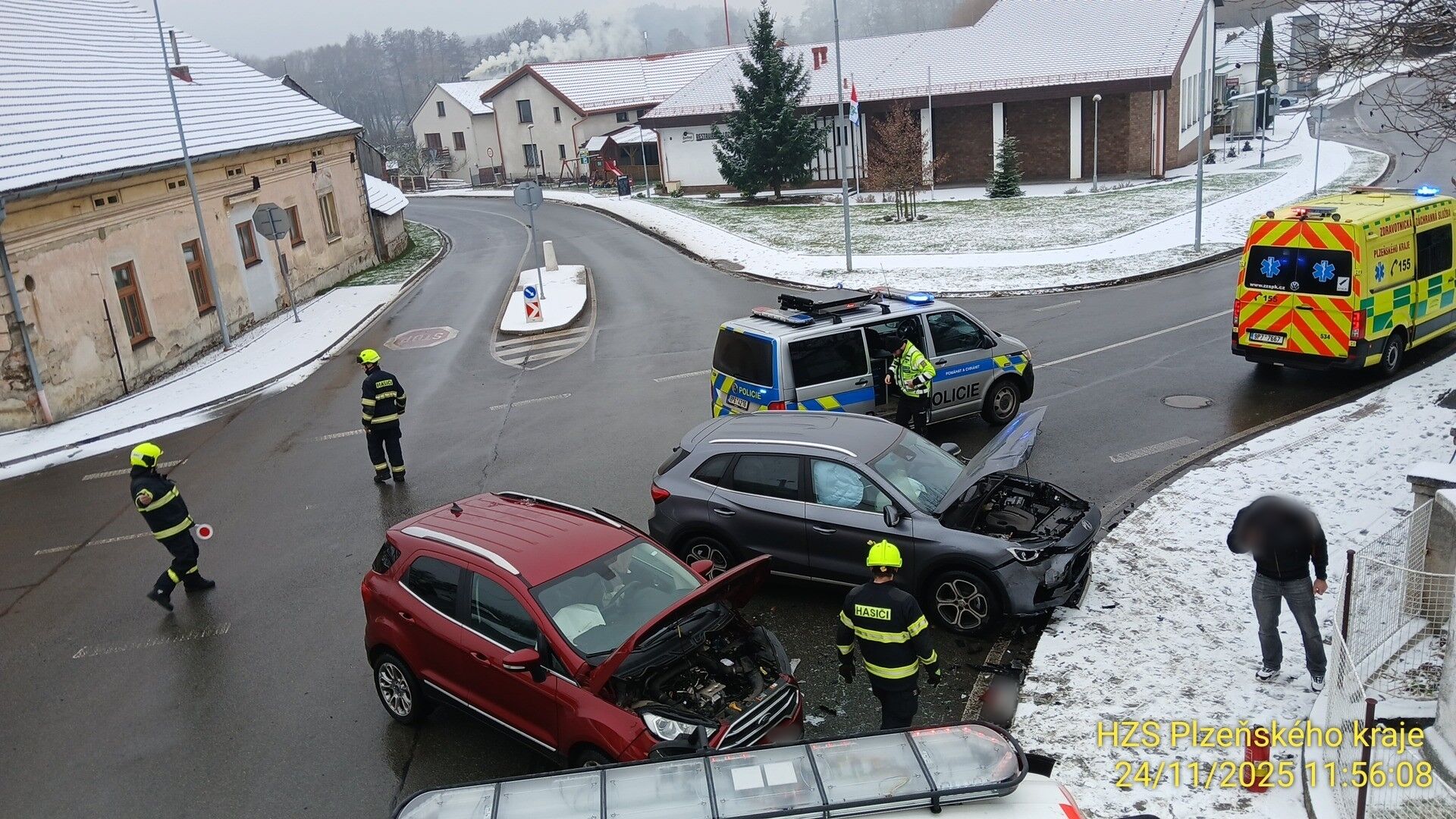 První vážnější nehoda zaměstnala složky IZS krátce před pátou hodinou ráno. Na silnici mezi obcí Kucíny a Přešticemi skončilo osobní auto převrácené na střeše.