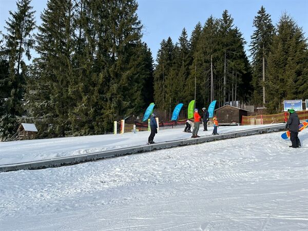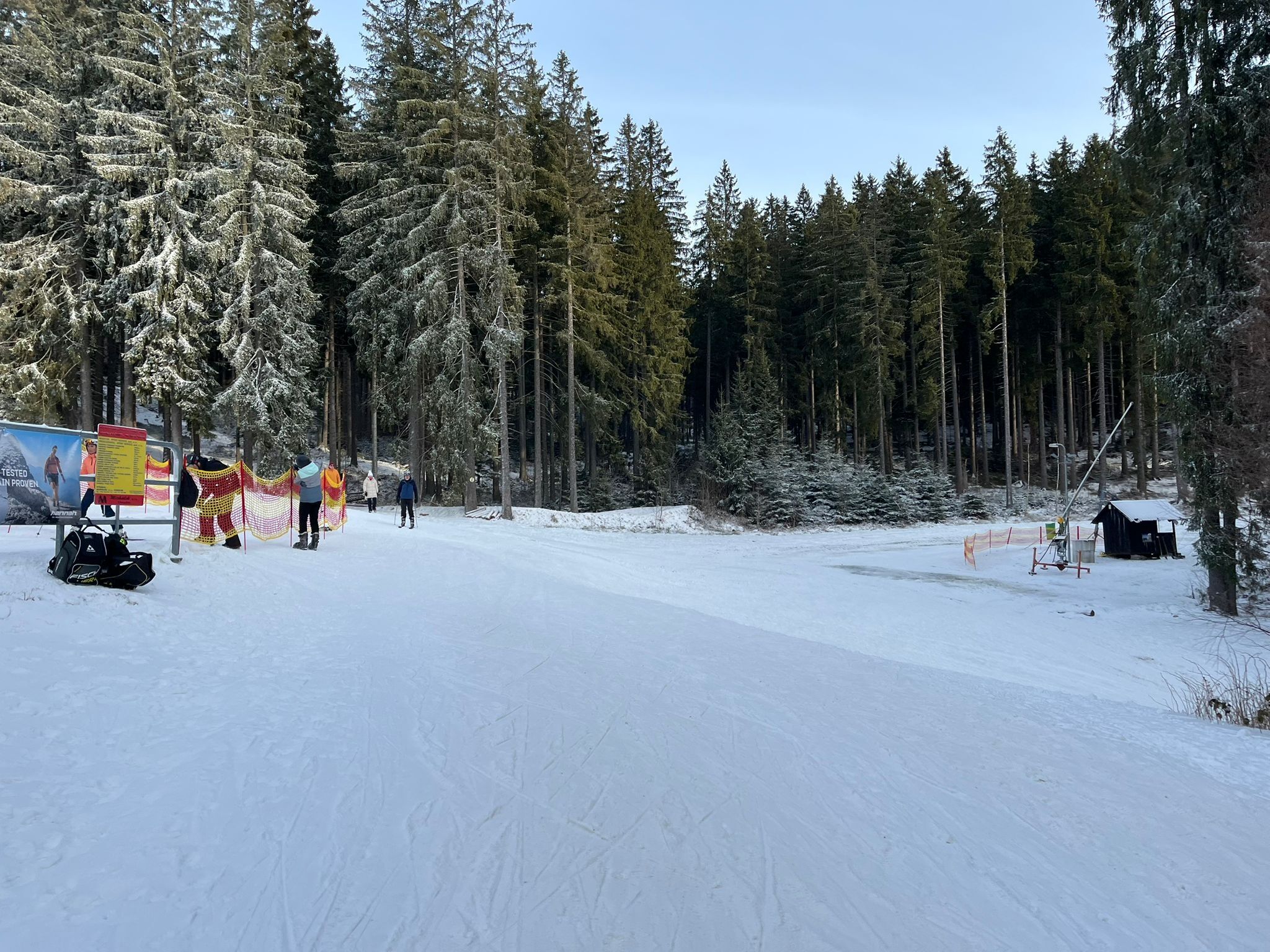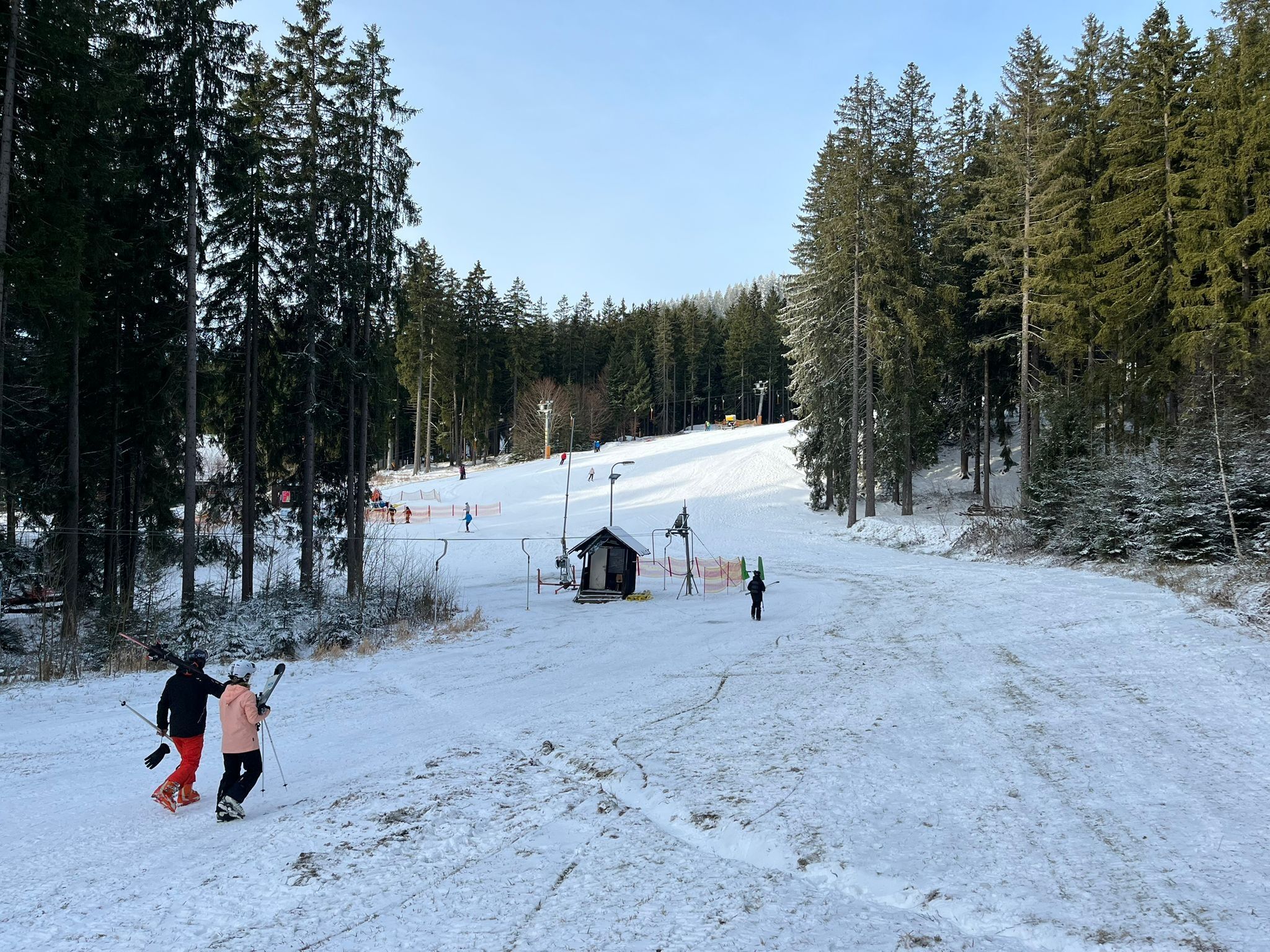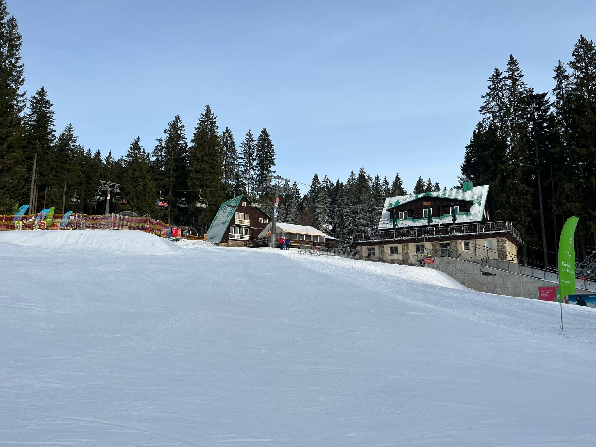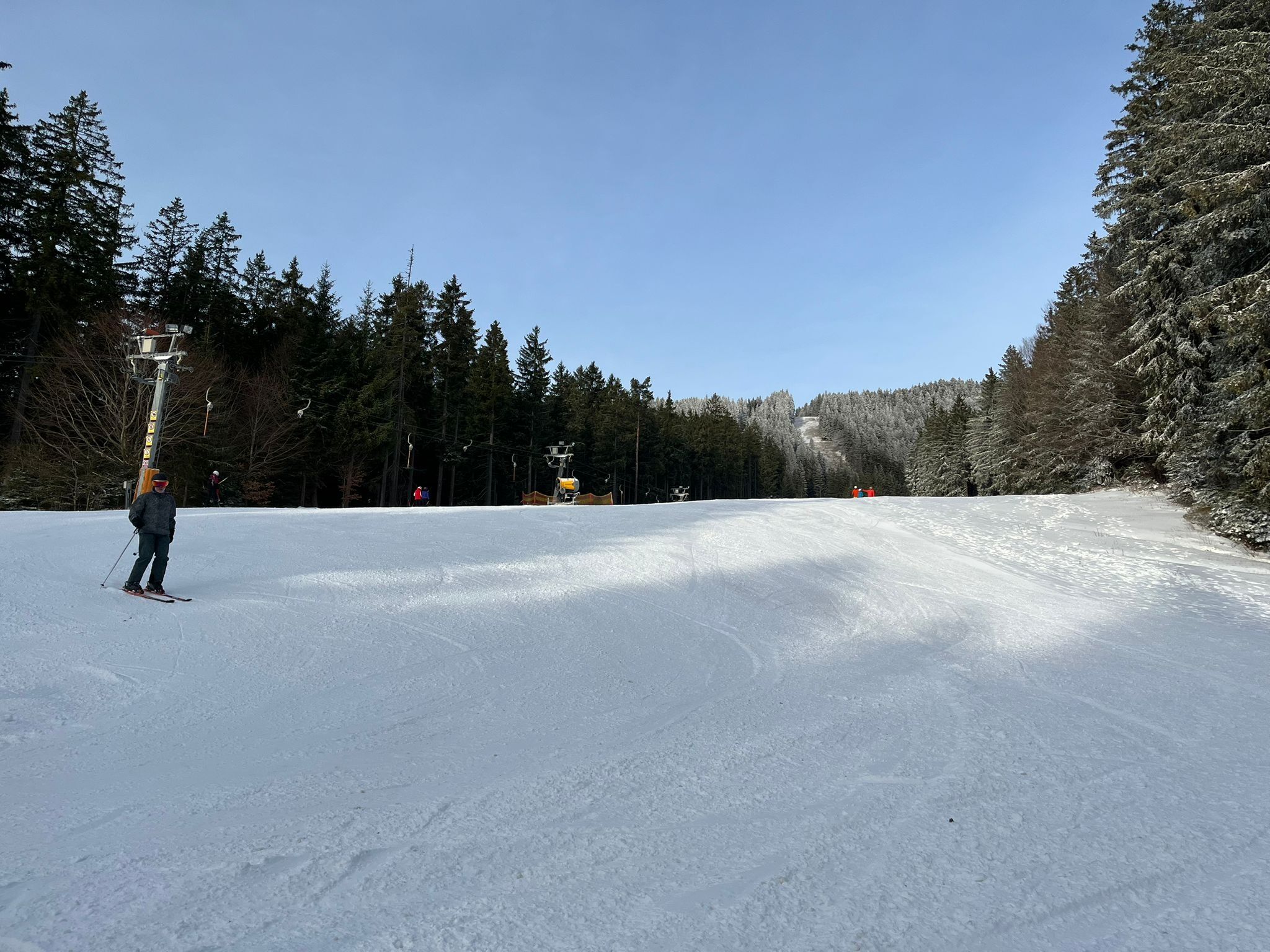 Aktuálně Ski&Bike Špičák stále nabízí trojku Slalomovou v celé délce (červená), rodinnou Spodní Šanci (modrá) a dětské hřiště s pohyblivým kobercem. Lyžaře vyveze k autům na hlavnímu parkovišti vlek, sjezdovka vedle něj se teprve bude vysněžovat.