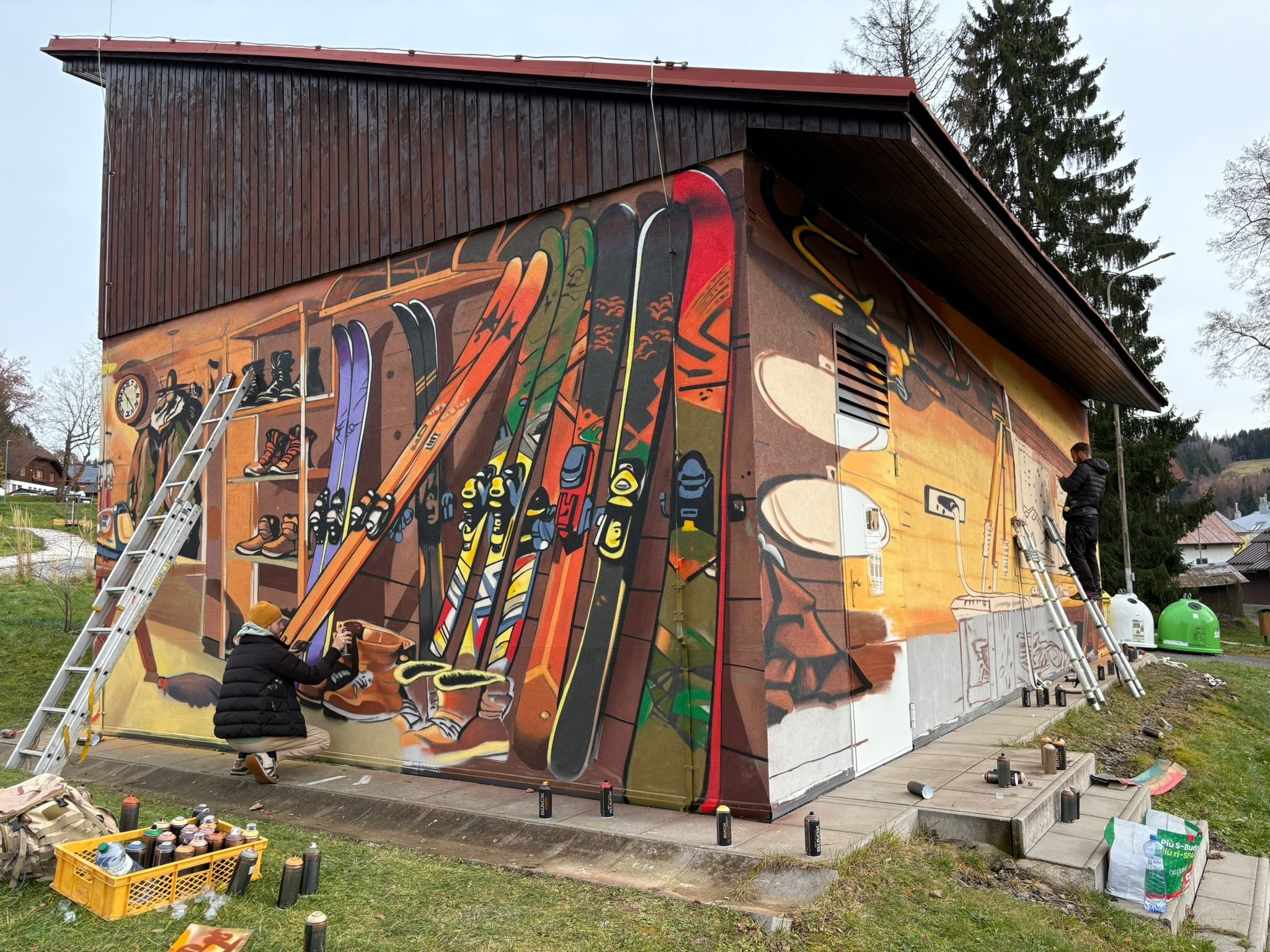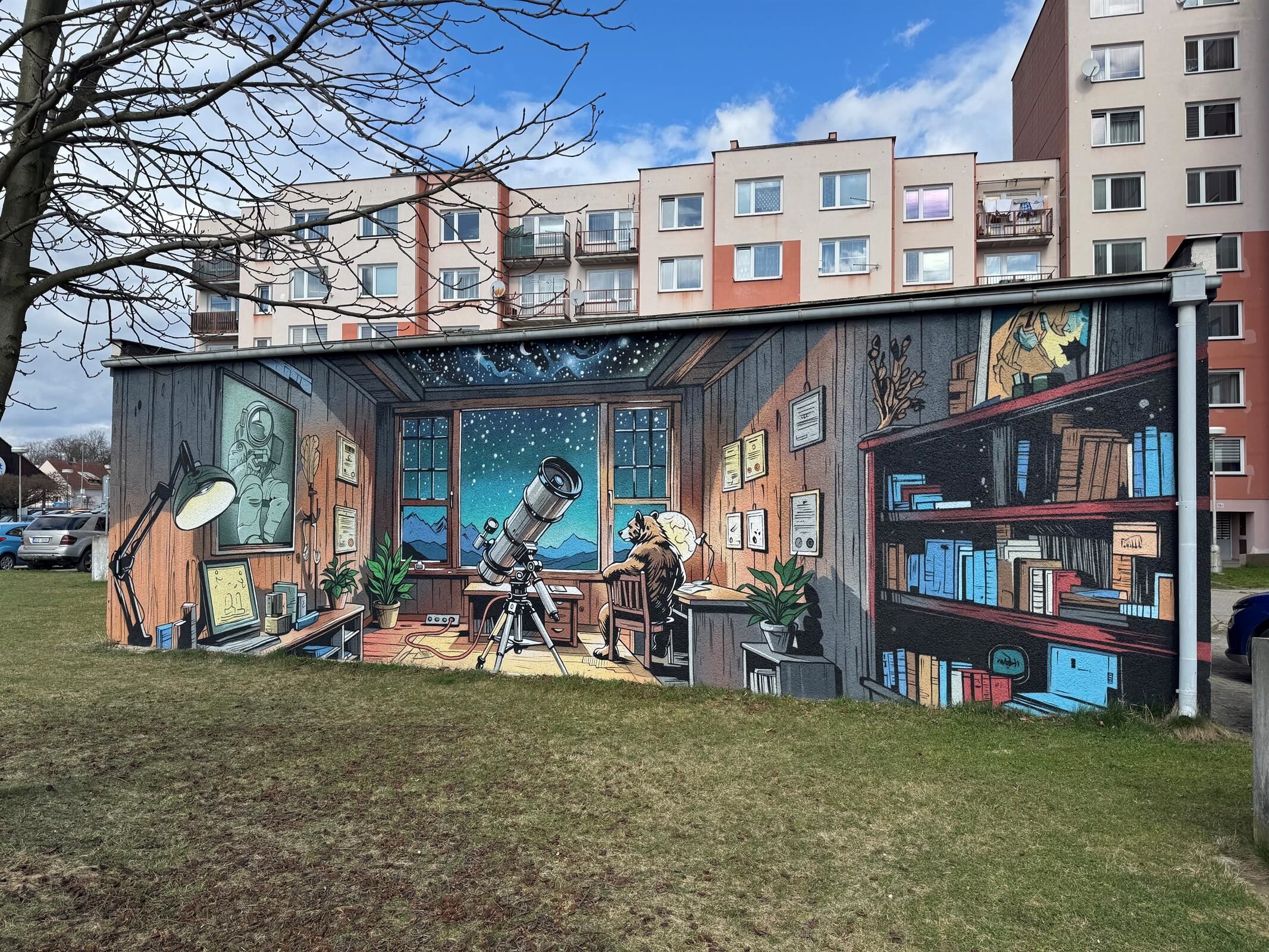 Celkem deset jich je v Plzni, z toho jsou čtyři ve čtvrtém plzeňském obvodu. Tam přibyla také zatím poslední, a to konkrétně ve Sluneční ulici. Tu zdobí motiv pingpongové herny s elektrokolem. Další je v ulici Pod vrchem - fotoateliér se sportovním autem, v Těšínské ulici je filmový ateliér s kamerou a siluetou losa, v Polední ulici je svářečská dílna se skulpturou velké kočky. Před pár dny sprejeři v Horažďovicích u mateřské školy v Mayerově ulici dotáhli motiv observatoře s teleskopem a sedícím medvědem.