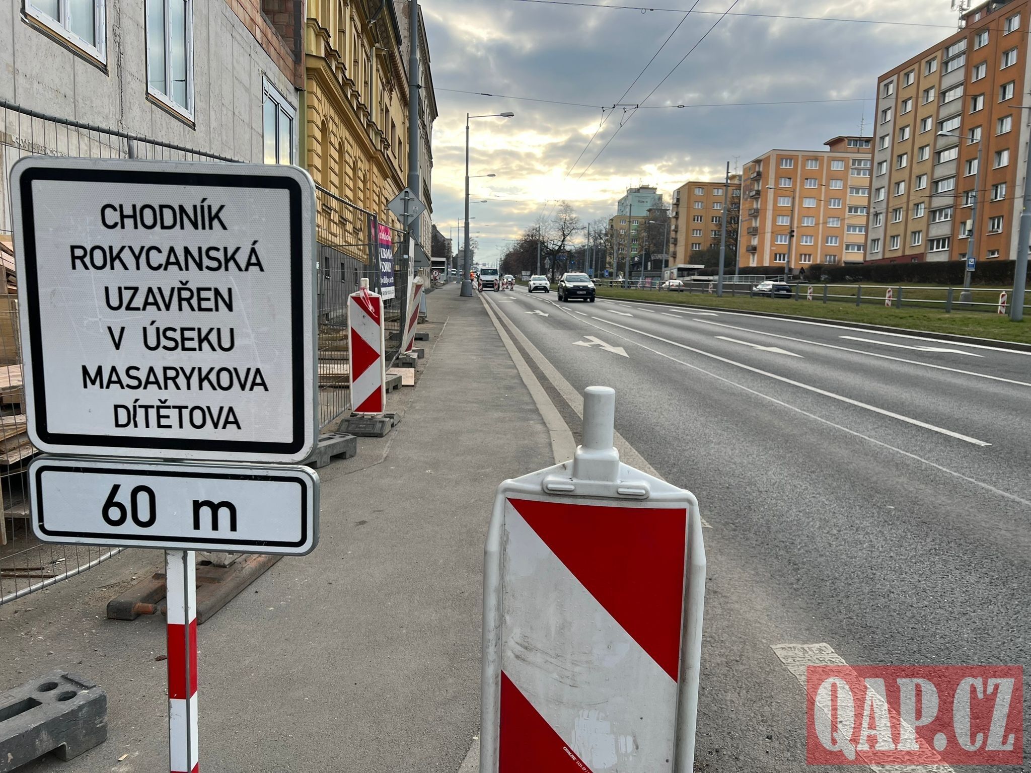 Uzavřen je také chodník v úseku Rokycanská mezi domy Rokycanská č. 140/27 a č. 804/47 a chodníky podél staveniště. Není možné projít po obou stranách v úrovni ulic Sousedská a Rodinná.