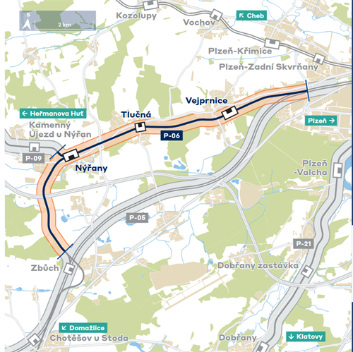 Stavební úpravy na železniční trati z Plzně do Zbůchu se blíží, stavba má vydané nepravomocné povolení a Správa železnic už má zhotovitele. V rámci stavby mají být opraveny i železniční stanice ve Vejprnicích, Nýřanech a Tlučné. Jízda vlakem v téměř 13 km dlouhém úseku se má toutu stavbou v budoucnu zrychlit.