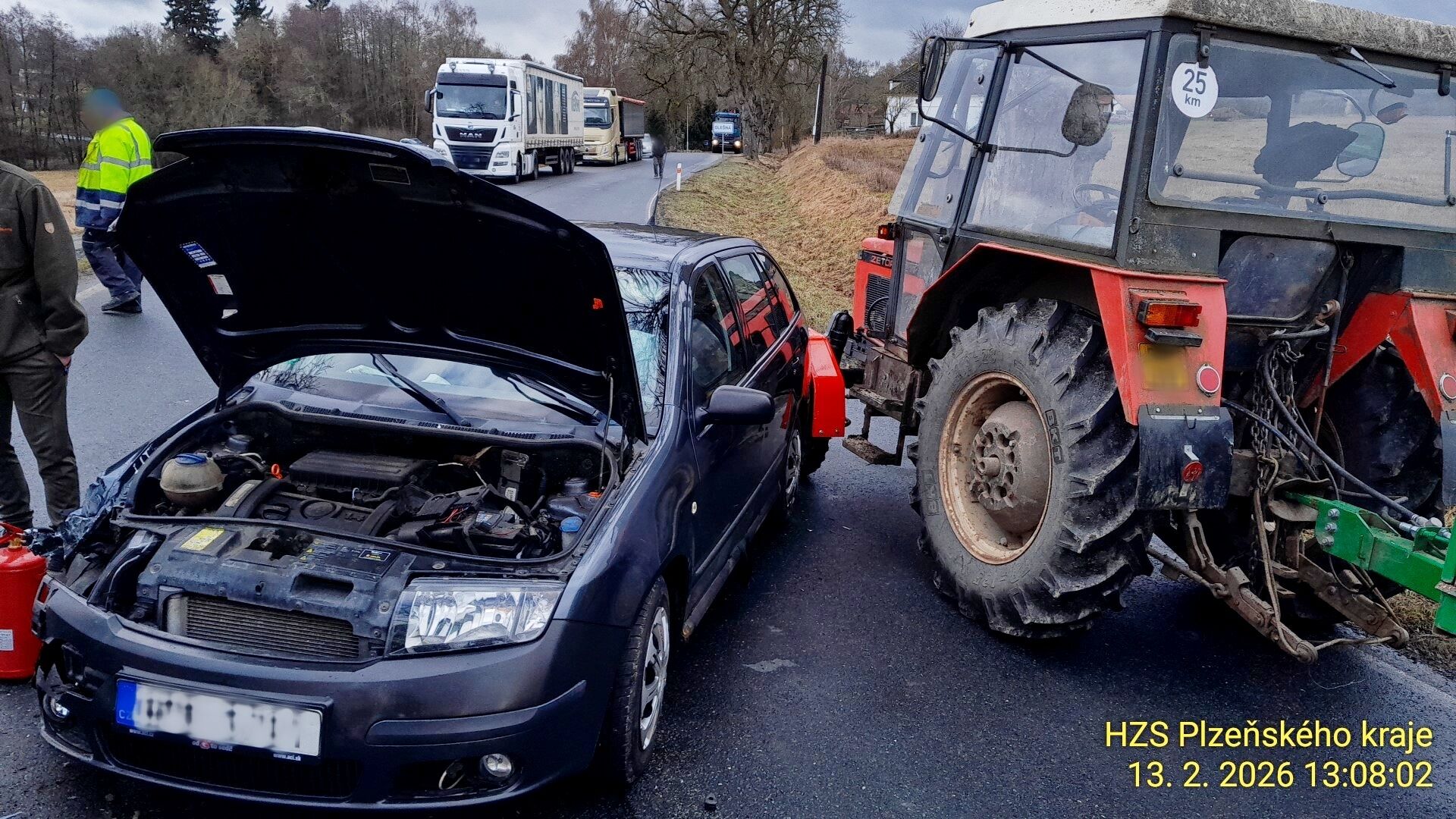 „Na silnici 200/II u Olešné se střetla dvě osobní auta a traktor. Jedno z vozidel skončilo mimo komunikaci,“ potvrdil mluvčí krajských hasičů Petr Poncar. „Nevyprošťovali jsme. Zajistili jsme místo nehody a provedli protipožární opatření,“ doplnil.