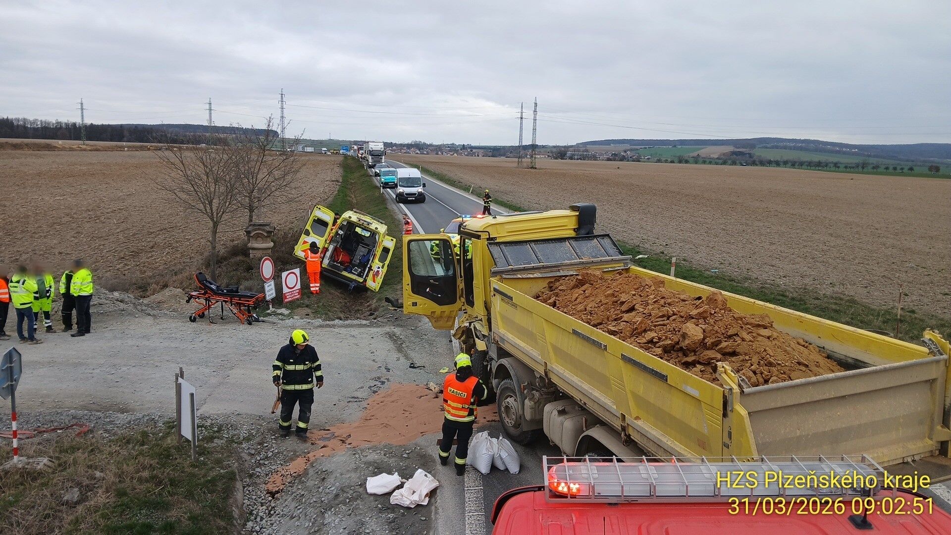 Dopravní nehoda se stala v úterý 31. března na hlavním tahu I/27 u Dolní Lukavice. Na místě se střetl nákladní automobil se sanitkou. Silnice musela být zcela uzavřena a na místě zasahují všechny složky integrovaného záchranného systému.