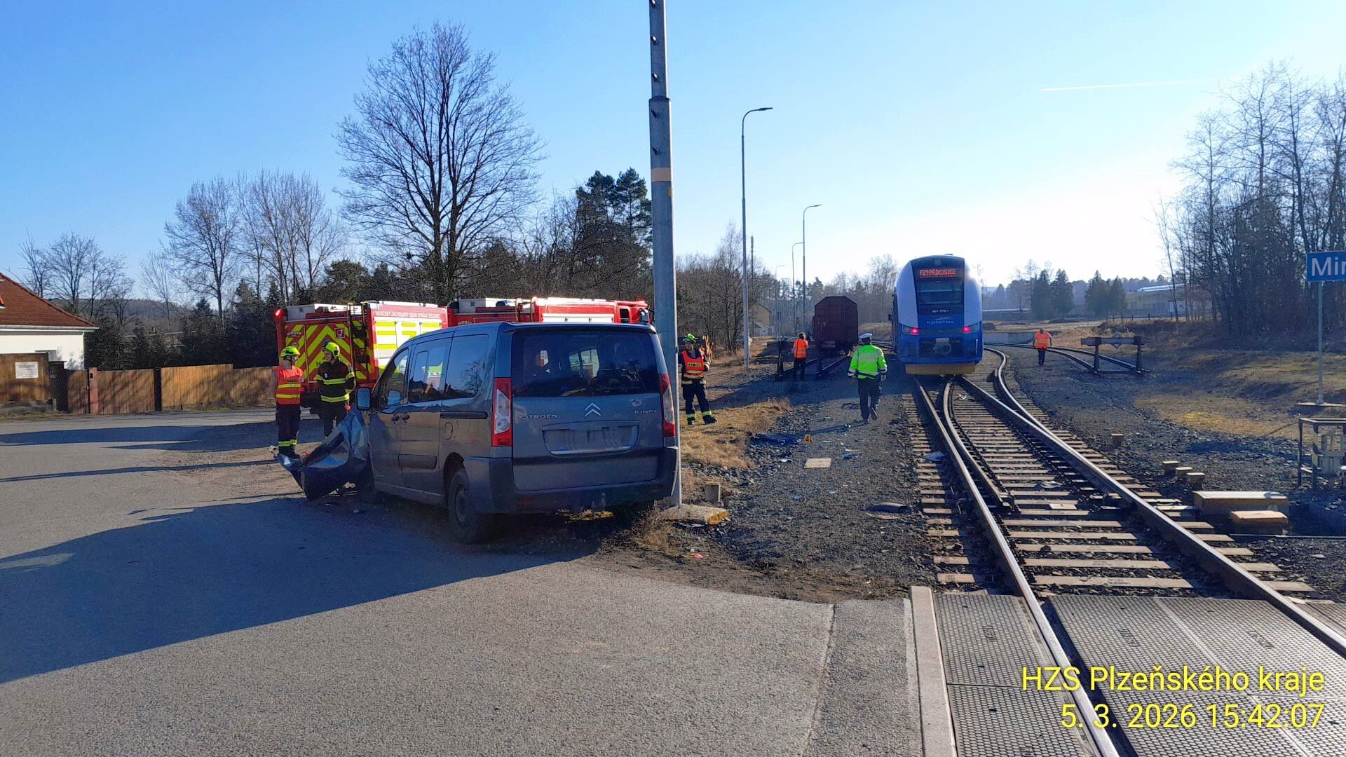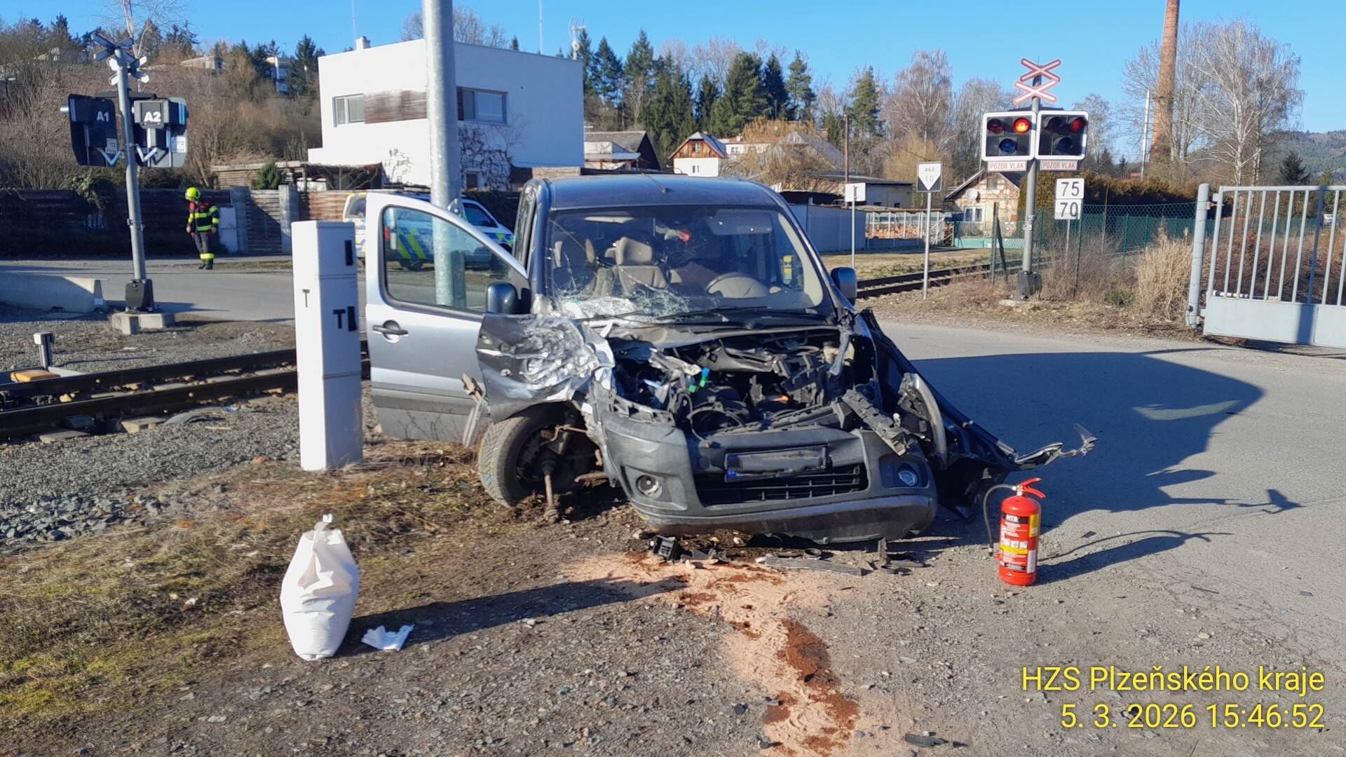 Střet vlaku s autem v Mirošově. Řidič po nehodě utekl - FOTKY