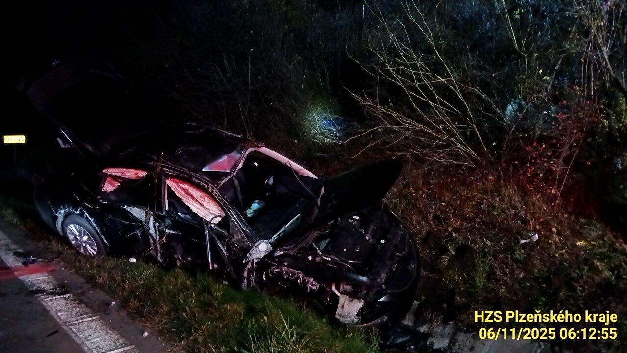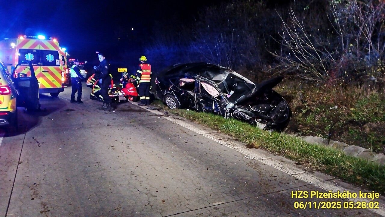 Na dálnici D5 na severním Plzeňsku zasahovaly ve čtvrtek nad ránem všechny složky integrovaného záchranného systému. Při nehodě osobního auta zemřel jeden člověk, další čtyři byli zraněni.