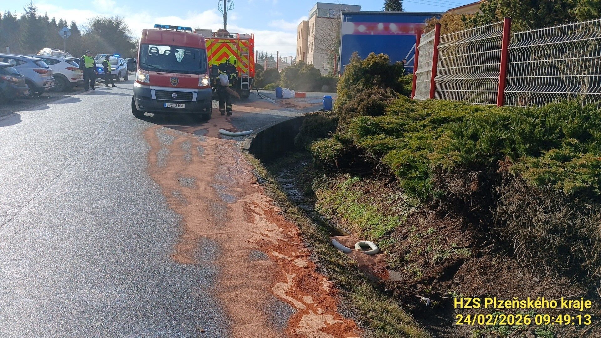 „Jedná se o únik většího množství nafty z nádrží nákladního automobilu. Skvrnu likvidujeme pomocí sorbentu,“ potvrdil mluvčí krajských hasičů Petr Poncar.