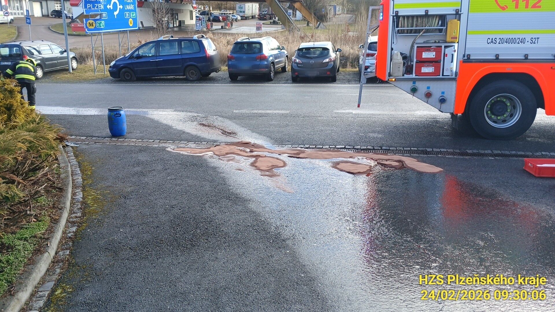 Rozsáhlý únik pohonných hmot zkomplikoval v úterý 24. února dopoledne dopravu v Kozlovické ulici v Nepomuku.